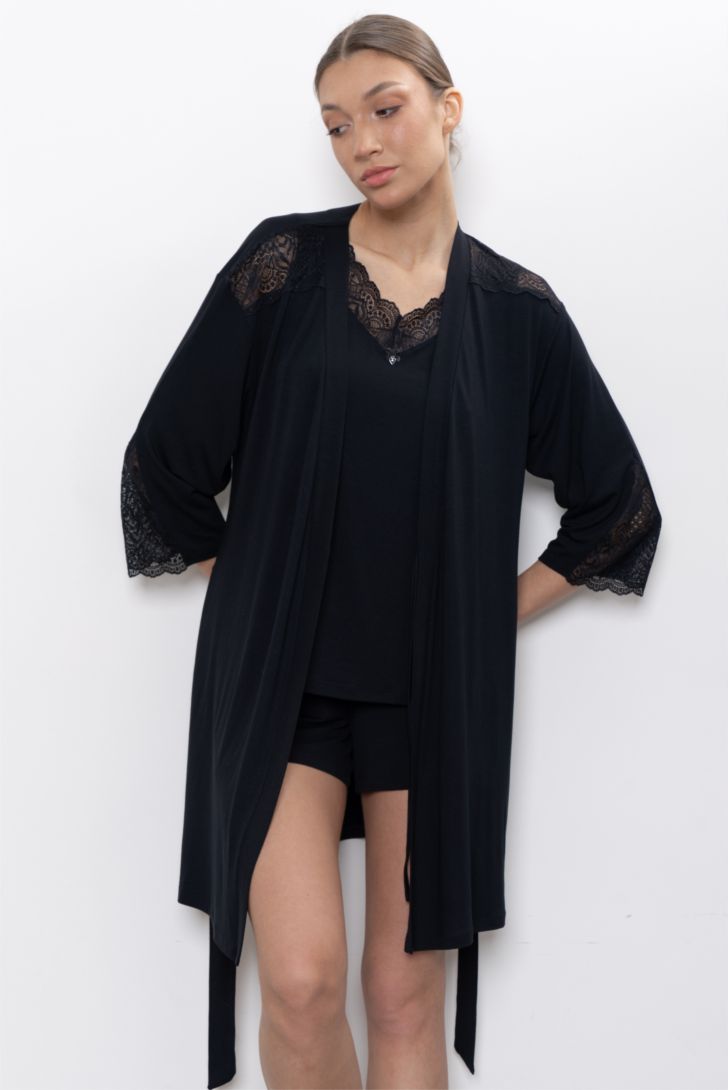 Шорты из струящегося бамбука на мягком поясе декорированы нежным кружевом по бокам. Шорты комфортны в носке и сочетаются с майками, футболками данной коллекции.