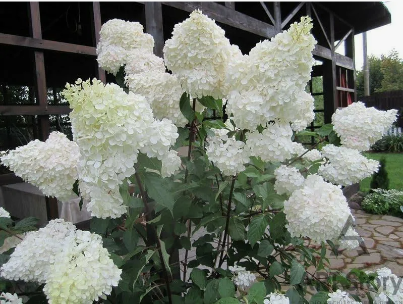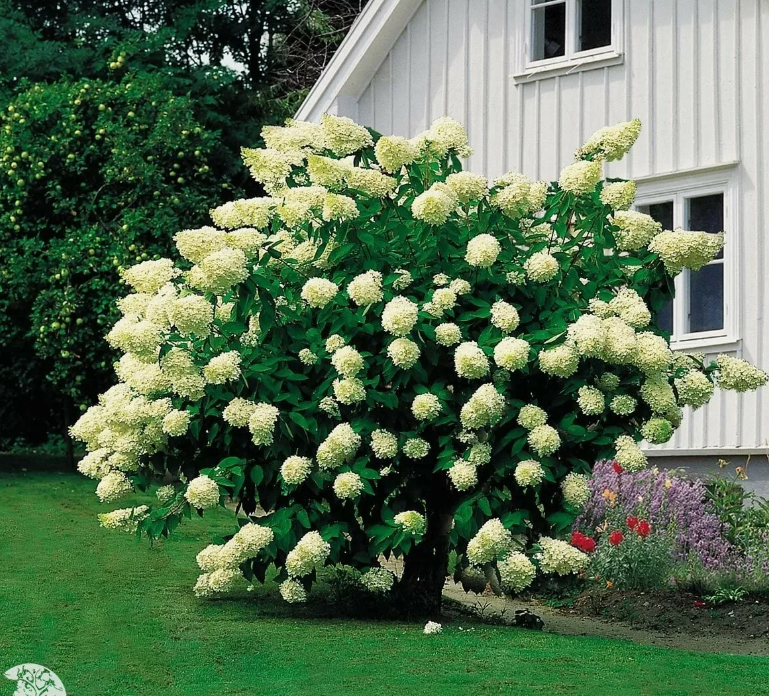 Крона: округлая, раскидистая. Цветет на побегах текущего года. Цветение: июль—сентябрь. Цветет крупными пирамидальными соцветиями — метелками, в начале цветения кремово-белыми, затем розовыми.