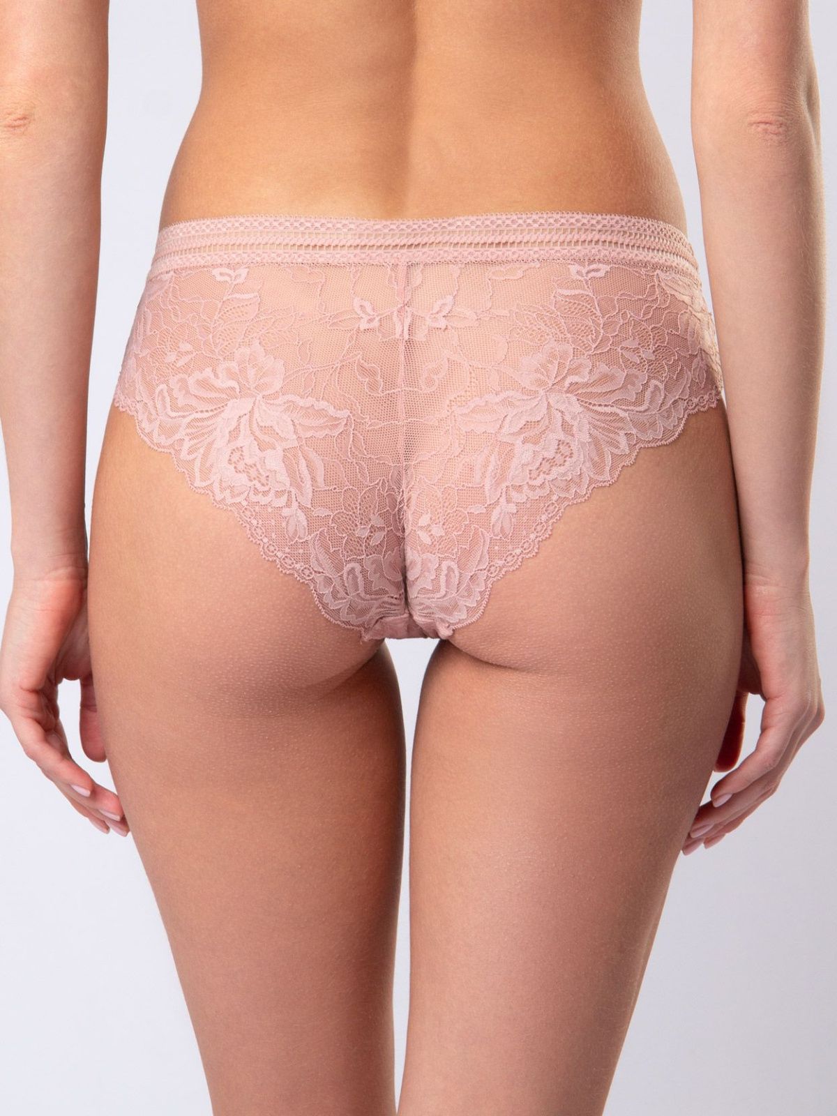 Трусы, стринги и слипы, из полиамида, розового цвета, из кружевной ткани, с обрамлением, со вставками из микросетки, средней посадки, на мягкой резинке.