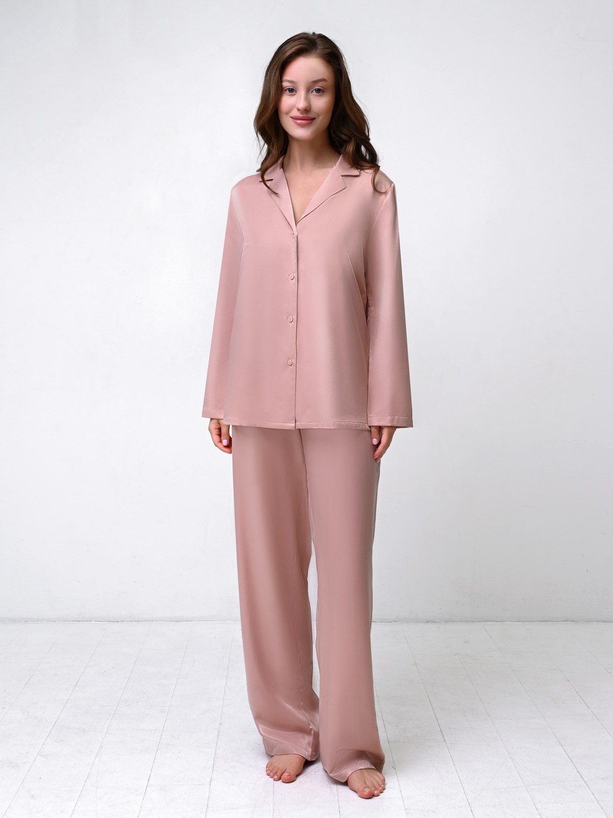 Стильная домашняя одежда от торговой марки Индефини в виде рубашки с длинным рукавом и брюками, самая популярная, можно носить в холодное время года. Такой вид одежды подарит комфорт и уют дома.