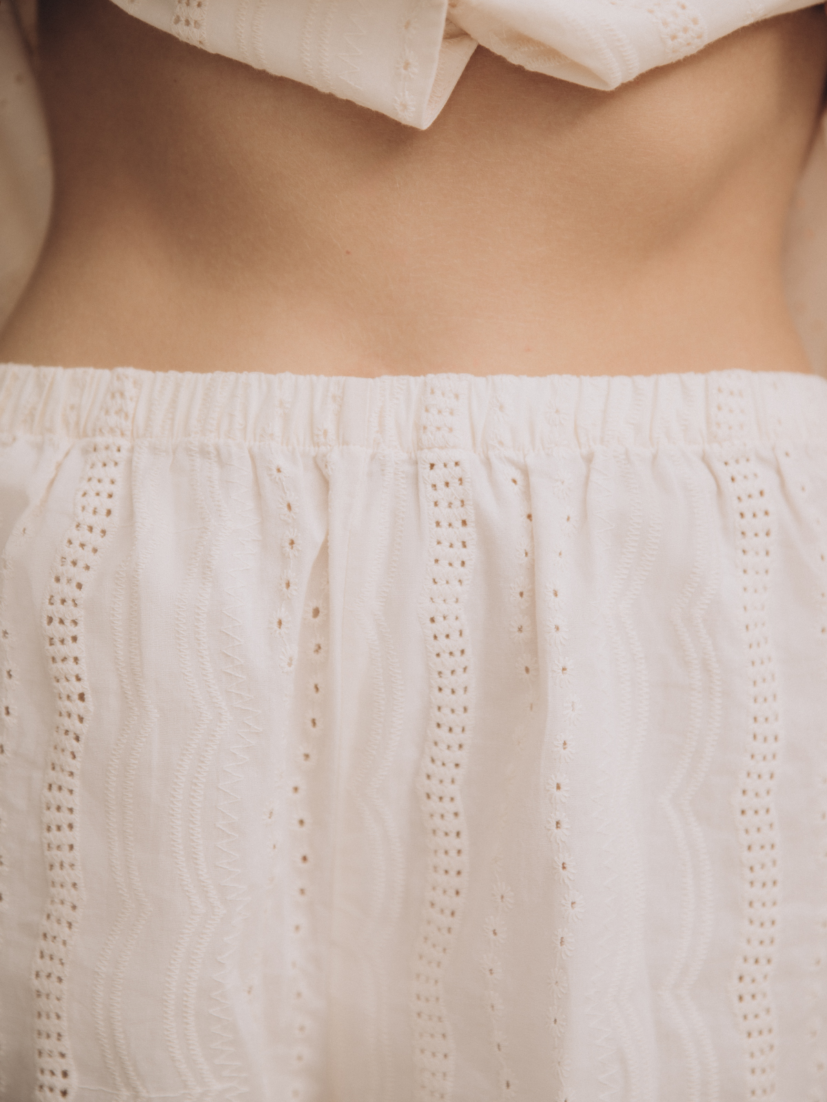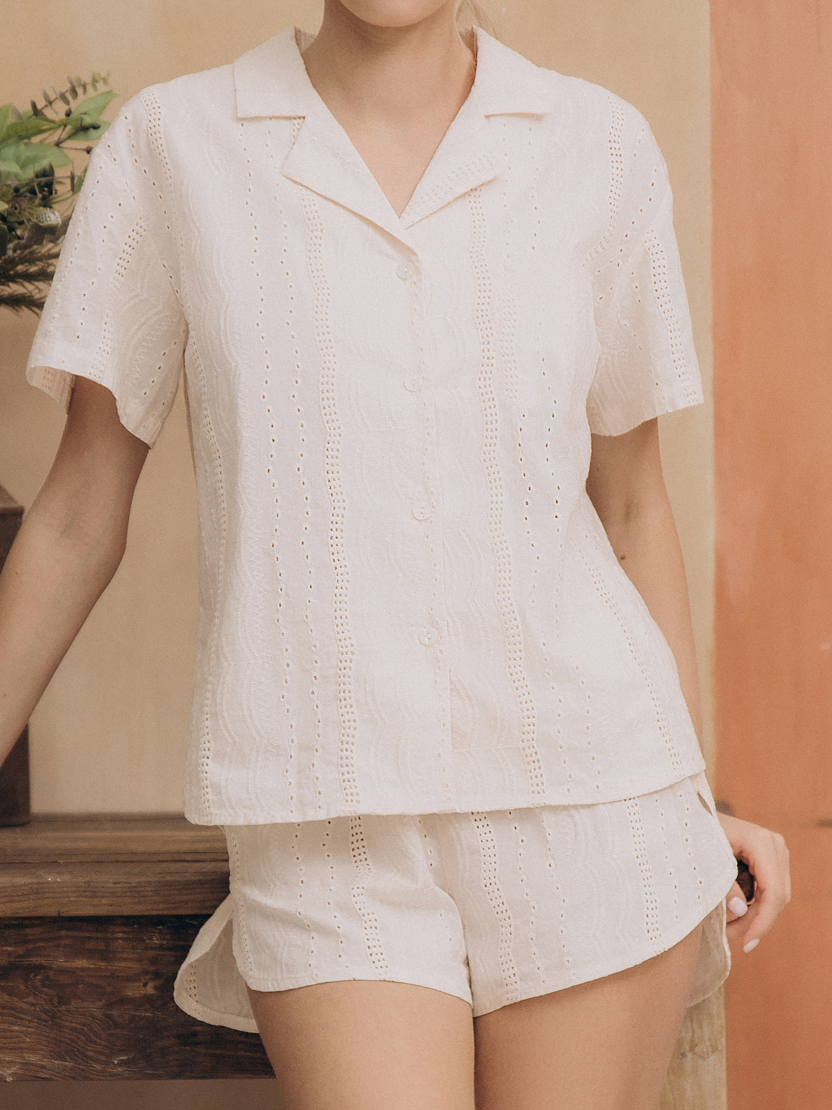 -Ткань пижамы выполнена с ажурной вышивкой.