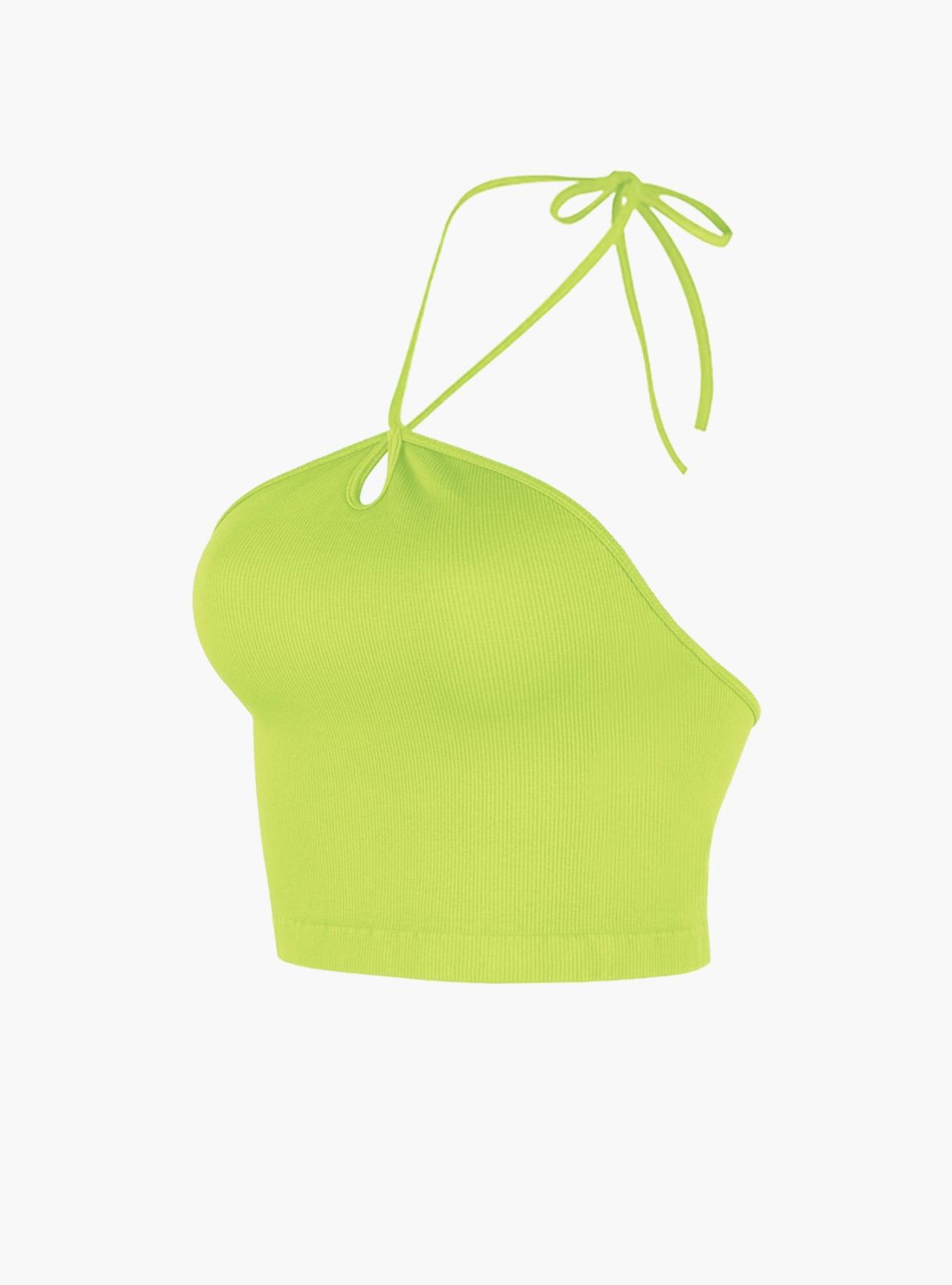 Топ из полиамида, кислотного цвета, в рубчик, на завязках, без рукавов, укороченный.