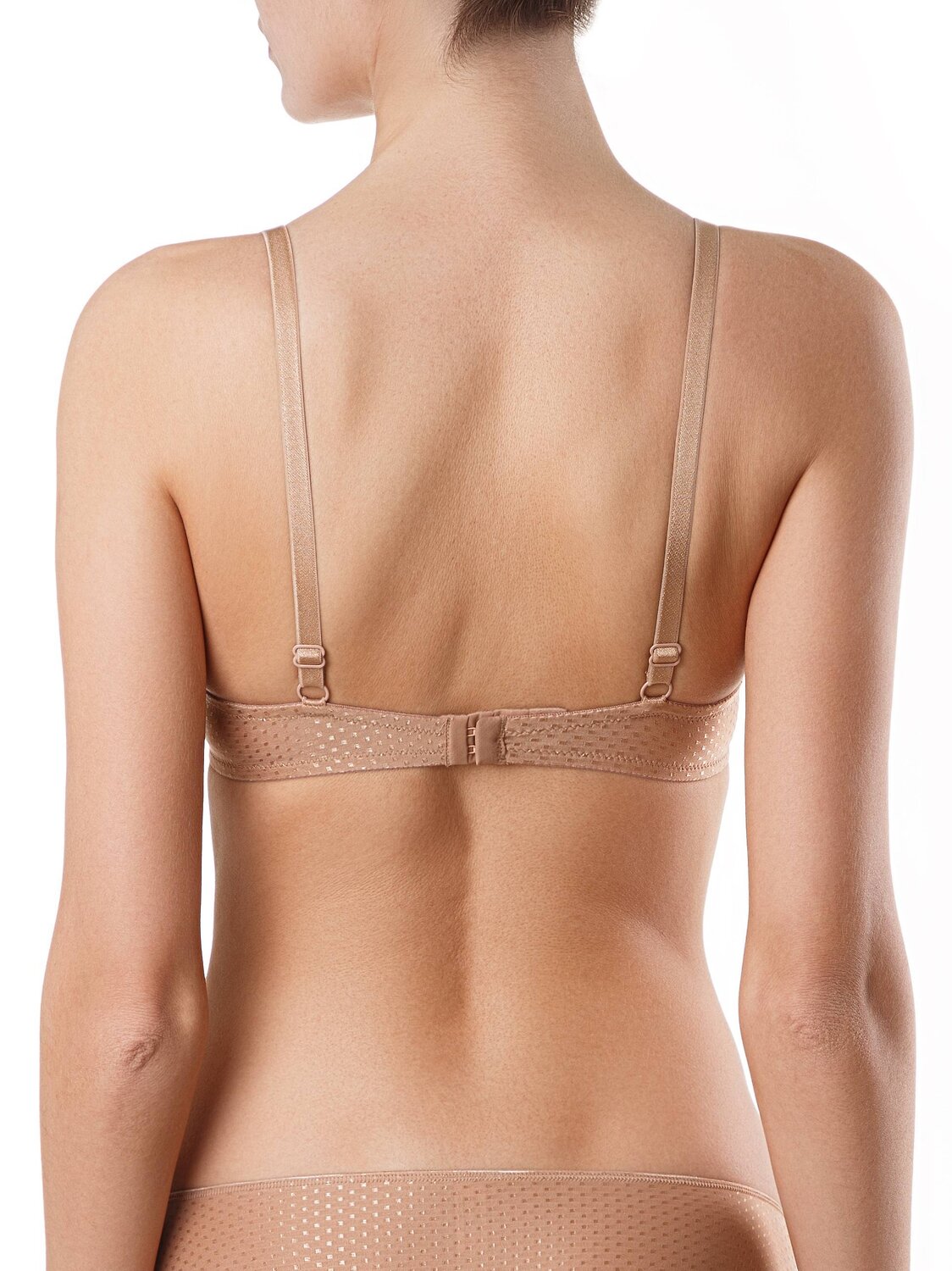 Бюстгальтер серии VOYAGE отличается чистотой линий и исключительным комфортом. Выполненный из полотна с деликатным жаккардовым рисунком «в горошек» и украшенный аппликациями макраме, бюстгальтер поможет создать одновременно простой и утонченный образ.