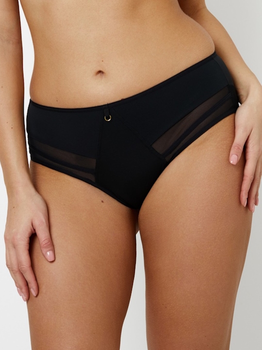 Черный 36(S), 38(M), 40(L), 42(XL), 44(XXL), 46(3XL) Трусы CHORS от европейского производителя Subtille. Модель конструкции бразильяно, с более широким боком, выполнена из микрофибры с добавлением вставок из микросетки. На попе двойной тюль. Спереди трусики декорированы золотистым небольшим колечком. 78% полиамид, 12% эластан, 5% полиэстер, 5% хлопок