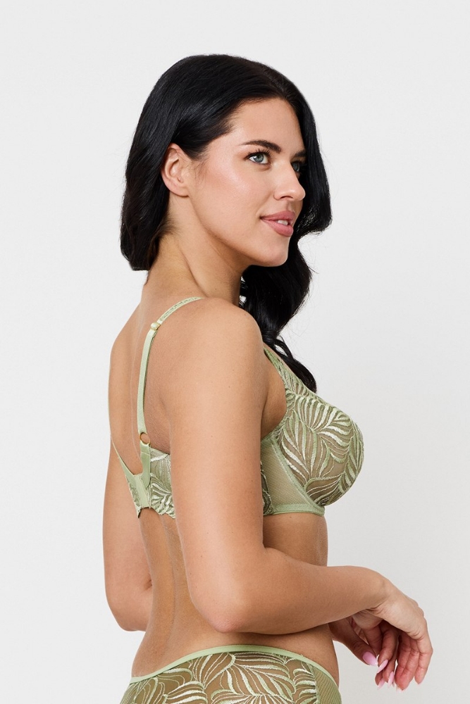 Оливковый 65E, 65F, 65G, 65H, 65I, 65J, 65K, 65L, 65M, 70H, 70I, 70K, 70L, 70M, 75C, 75F, 75H, 75I, 75J, 75L, 75M, 80C, 80D, 80E, 80F, 80G, 80H, 80I, 80J, 80K, 80L, 80M, 85C, 85D, 85E, 85F, 85G, 85H, 85I, 85J, 85K, 85L, 90C, 90D, 90E, 90F, 90G, 90H, 90I, 90J, 95C, 95D, 95E, 95F, 95G, 95H, 95I, 95J, 100C, 100D, 100E, 100F, 100G, 100H, 100I Бюстгальтер FLORANCE от европейского производителя Subtille. Мягкая чашка на кости, конструкция чашки S-01 мягкая чашка с Т-образным кроем более открытая форма. Несъемные регулируемые бретели. Выполнен из микросетки и кружева. Золотые детали. Фирменный логотип Subtille. 85% полиамид, 10% эластан, 5% полиэстер