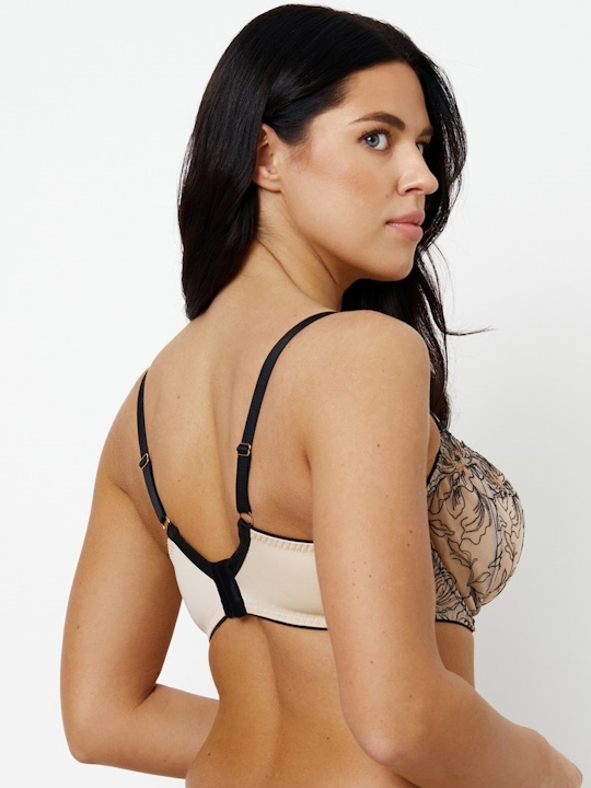 Бежевый+черный 65L, 65M, 65N, 70N Бюстгальтер LINDA от европейского производителя Subtille. Мягкая чашка на кости, конструкция чашки S-05, несъемные регулируемые бретели. Выполнен из нежного микротюля с цветочной вышивкой и микрофибры. 85% полиамид, 10% эластан, 5% полиэстер