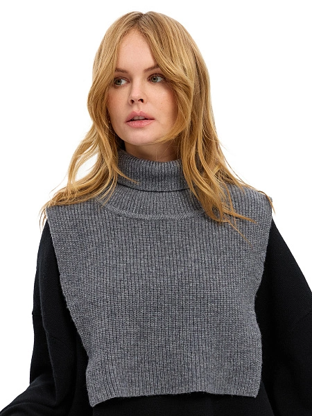 Теплая манишка из нежной шерсти мериноса объемной вязки – новинка сезона от Norveg для повседневного использования в холодное время года. Трендовый аксессуар с высоким, широким воротником-стойкой, имеющим отворот, с передней и задней частью оптимальной длины надежно защитит шею и плечи от холода и ветра, расставит нужные акценты и добавит аутфиту завершенности. Изделие единого размера легко надевается через голову, не портя прическу, аккуратно садится и не перекручивается даже во время активностей, занятий спортом. Манишку можно использовать как шарф или носить поверх образа на манер кейпа. Это прекрасный вариант для луков с открытой шеей и декольте, позволяющий не замерзнуть, находясь на улице, а также решение для тех, кто не носит классические шарфы и не хочет заморачиваться с их драпировкой. Аксессуар хорошо сочетается с верхней одеждой в стилях casual и sport: куртками, пальто, пуховиками. Модель представлена в двух базовых цветах: серый меланж и черный.