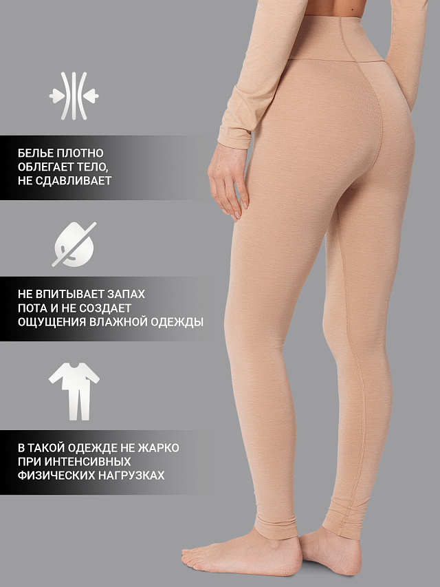 Плотные и облегающие, «дышащие» и гигроскопичные женские легинсы. Идеальны для любых зимних активностей и повседневного ношения – от прогулки по парку до катания на сноуборде. Отсутствие боковых швов и высокая посадка по талии делают леггинсы максимально практичными. В состав полотна, созданного по японской технологии, входит микроакрил, который благодаря своей толщине (меньше волоса человека в 10 раз), создает своеобразные воздушные карманы между нитями – именно за счет этого свойства легинсы такие теплые. Технология производства ткани позволяет термобелью выдерживать экстремальные температуры до -30 градусов Цельсия.