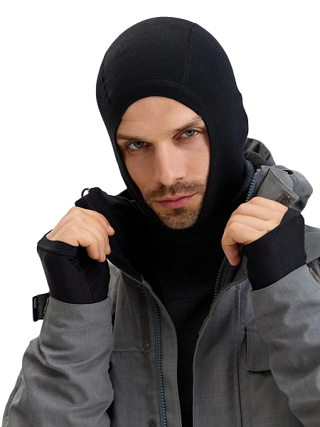 Термобелье балаклава из шерсти мериноса мужская для охоты и рыбалки серии FACE MASK, цвет черный