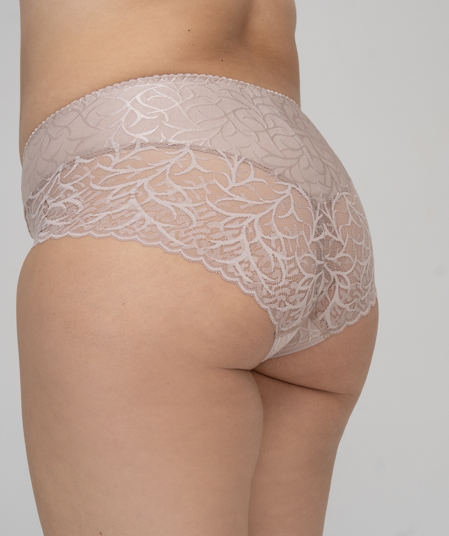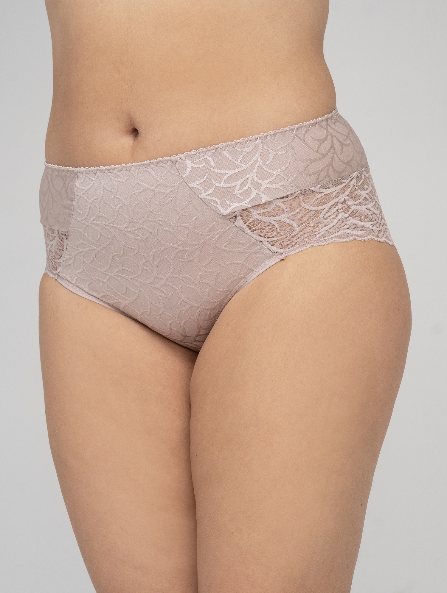 Трусы с высокой посадкой из элегантного кружева и жаккардового полотна. Крой трусов позволяет создать красивый силуэт, мягко утягивая животик.Комплектуется к моделям 296-297-78, 437-78, 961-78, 270-78 морской туман.