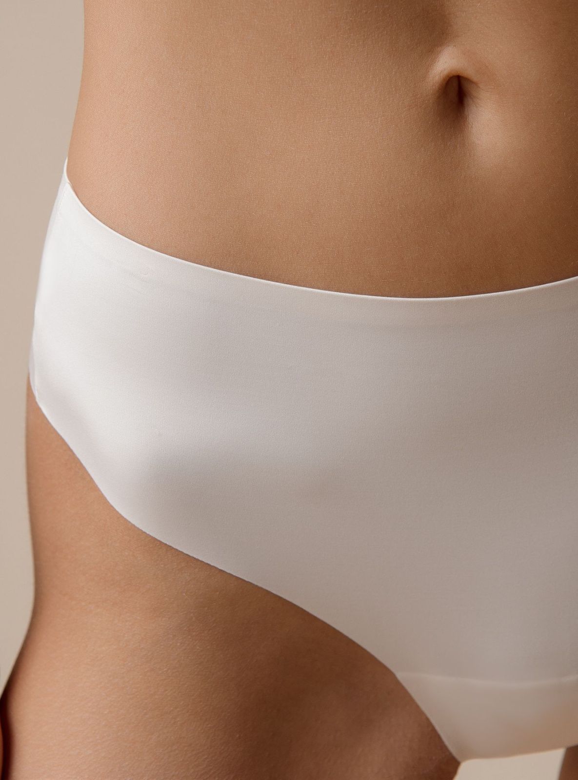 Бесшовные женские трусы-стринги молочного цвета из полиамидного материала не натирают и не впиваются в кожу. Мягкая резинка позволяет этой модели удобно сесть на тело и обеспечить максимальный комфорт при носке. Средняя посадка делает эти трусы универсальными и подходящими для повседневного использования.