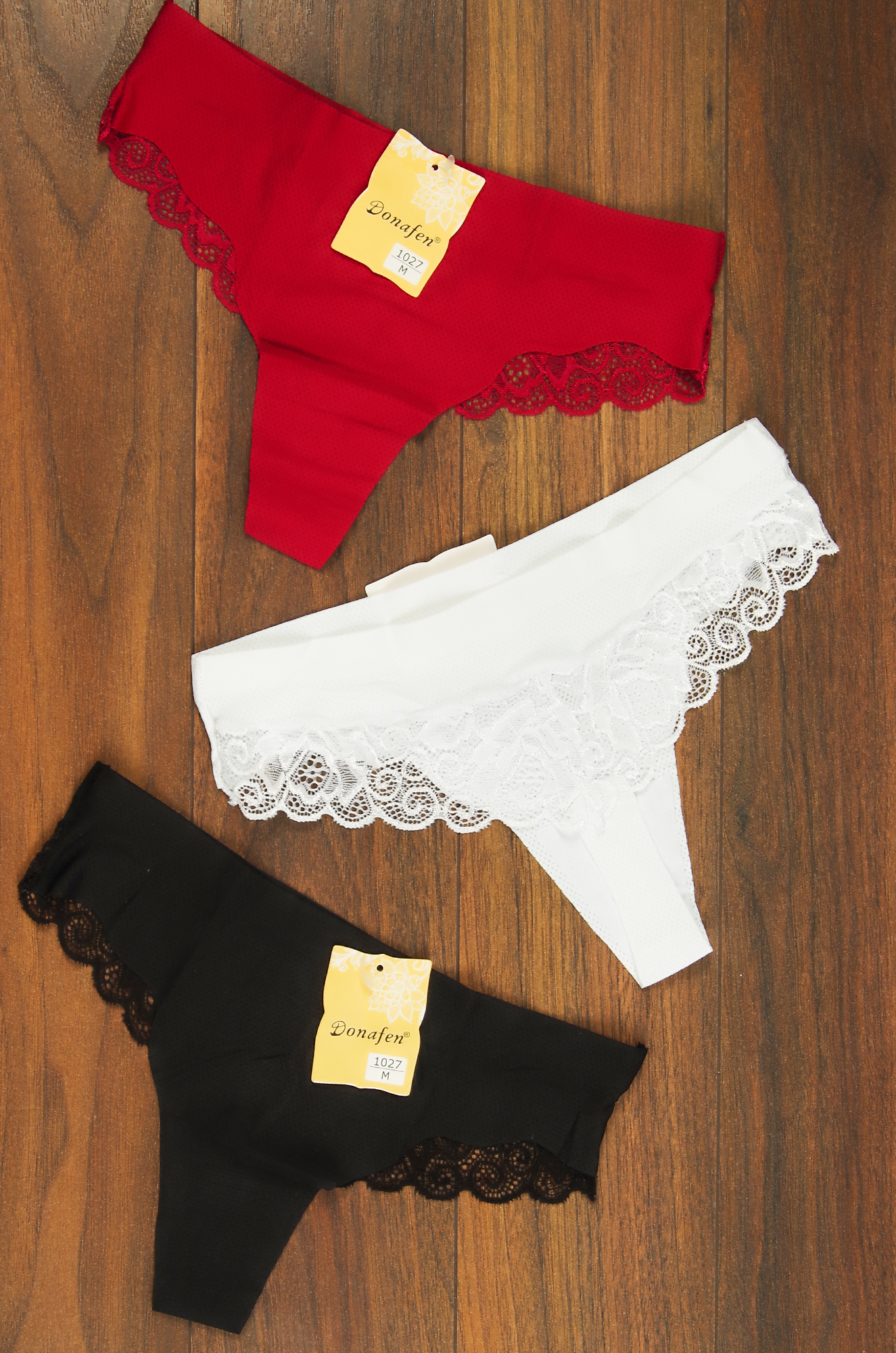 Красивые, сексуальные молодёжные маленькие трусики "стринги" отлично облегающие тело. Сзади кружево, спереди из мягкого, нежного, тонкого, шелковистого и невесомого нейлона, очень приятного к телу. Производство фабричный Китай высокого качества.