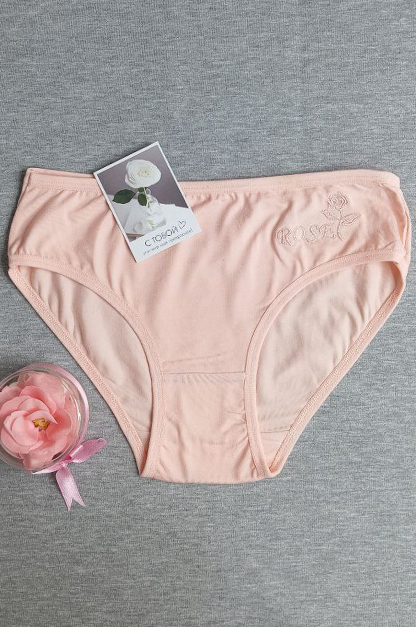 Маленькие молодёжные однотонные трусики с вышивкой сбоку. Товар продается упаковками по 3 штуки. Цена указана за упаковку