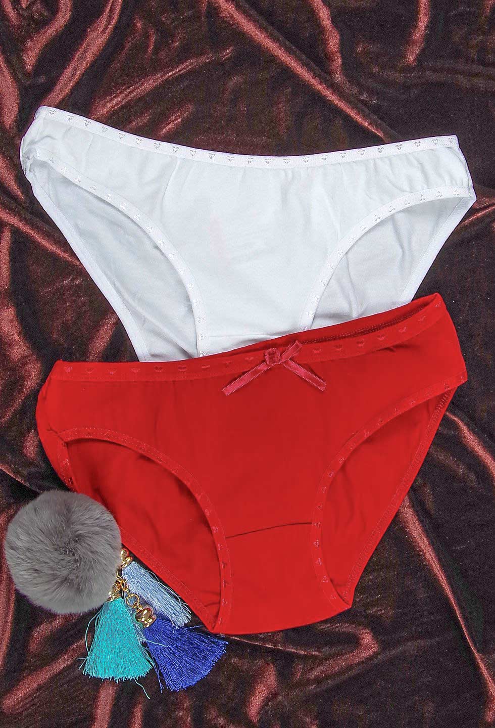 Женские молодежные трусики из мягкого, эластичного хлопка высокого качества. Края обработаны резинкой с декоративным рисунком "сердечки".