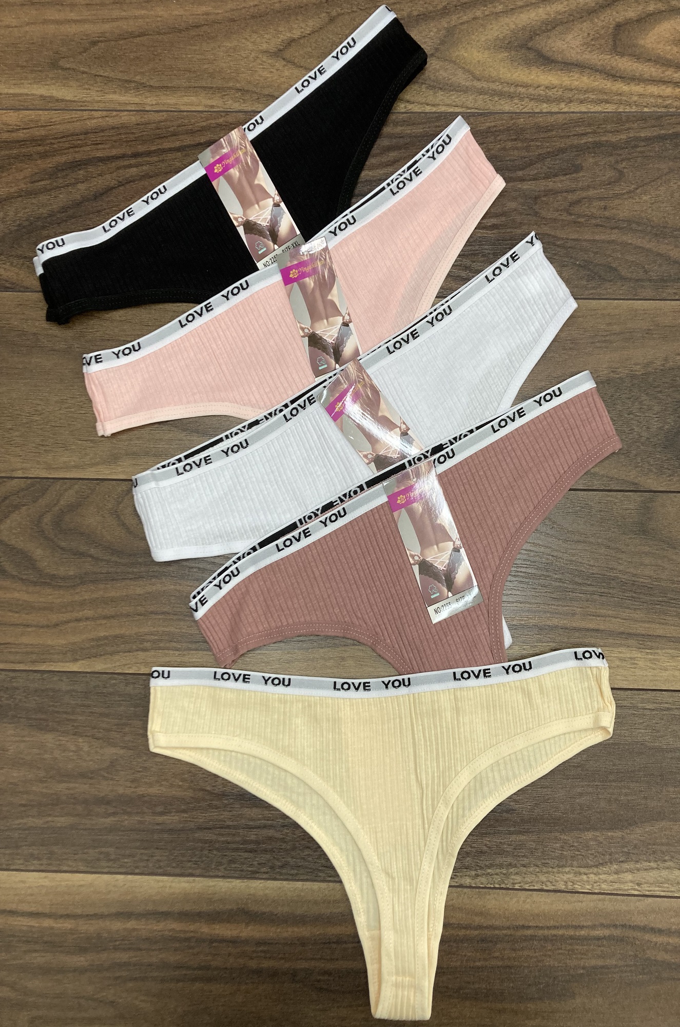 Молодёжные трусики "стринги" спортивной модели из мягкого, эластичного хлопка "в рубчик". Пояс на узкой резинке с надписью. Производство Китай.