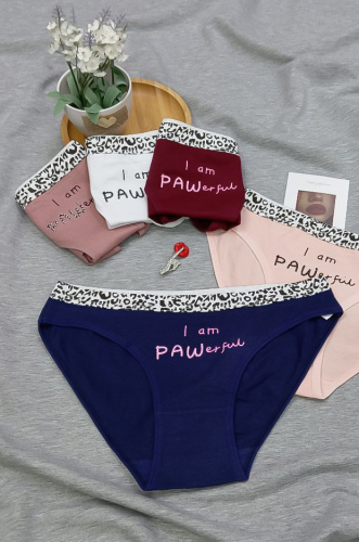 Женские трусики молодёжной модели из мягкого и эластичного хлопка, спереди небольшой печатный принт. Контрастная резинка в леопардовом стиле придает изюминку.