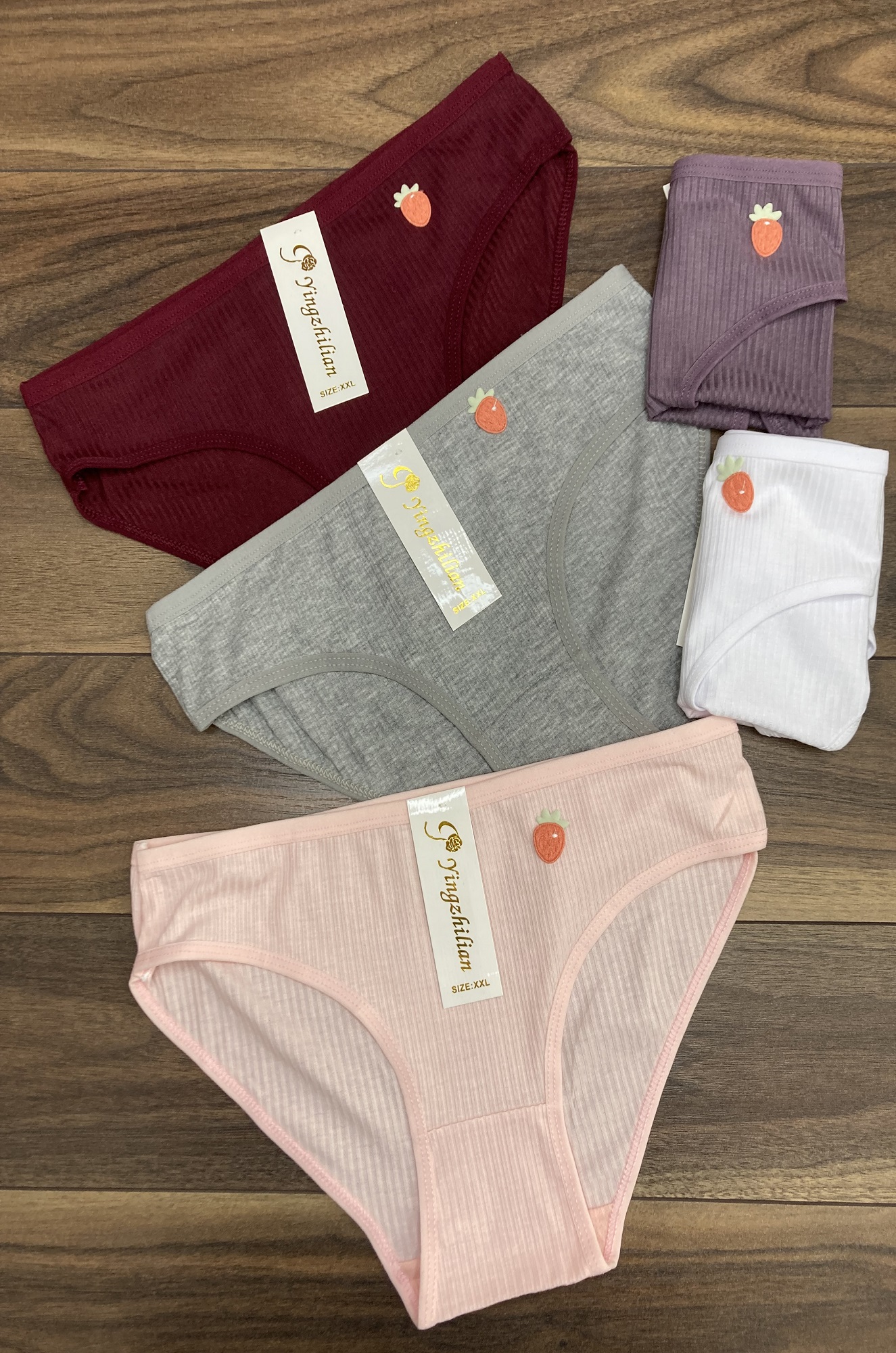 Маленькие молодёжные трусики-слипы из эластичного, мягкого однотонного хлопка "в рубчик". Сбоку декоративная аппликация "клубничка". Производство - Китай.