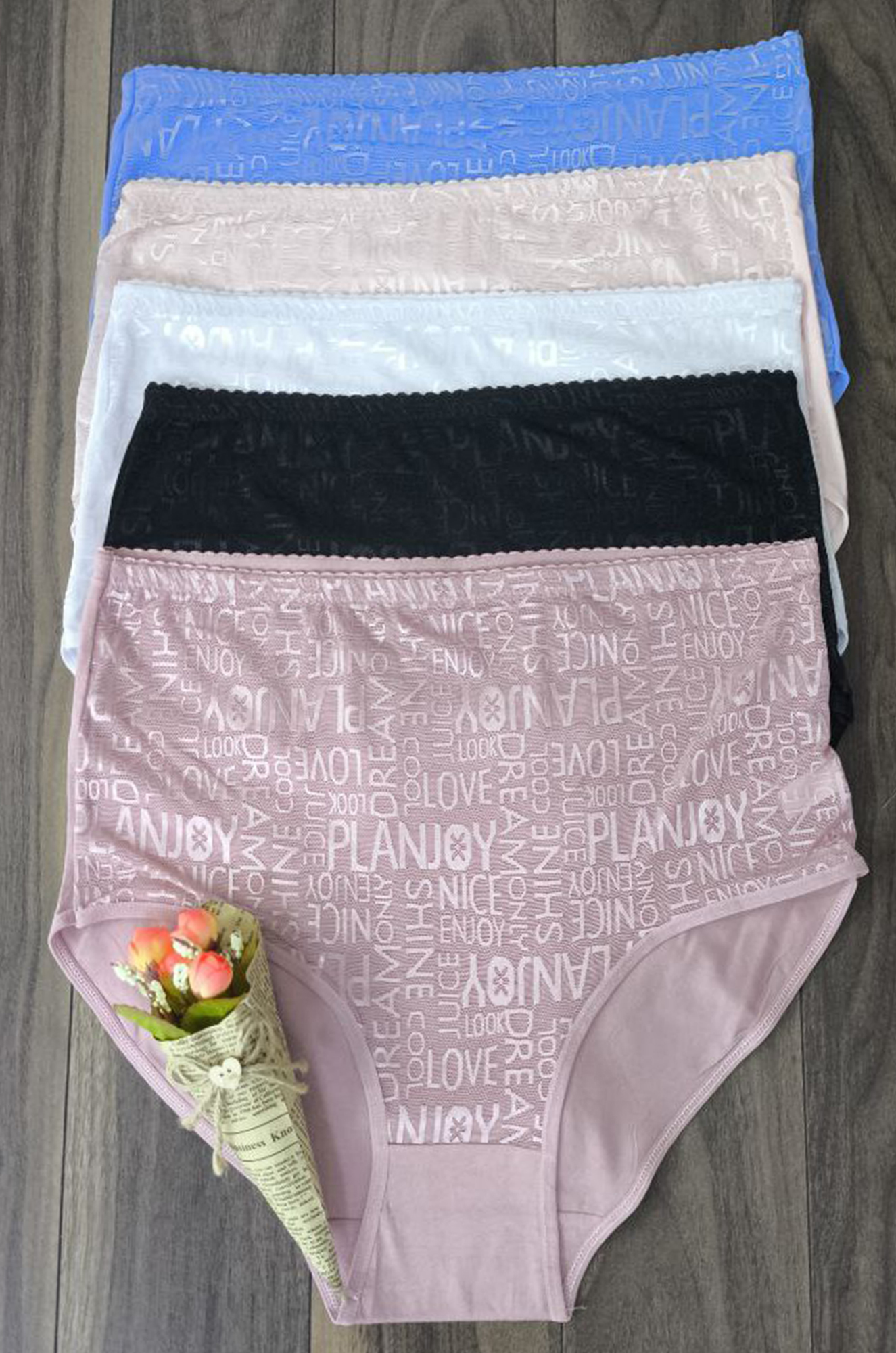 Симпатичные трусики средней посадки из гладкого эластичного хлопка. Спереди прозрачная сетка с надписями.