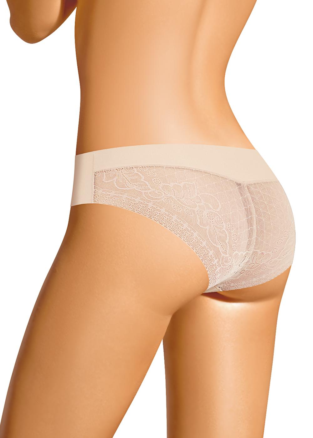 Трусы бикини женские из полиамида с эластаном. По спинке кружево. Обработка краев - подклееный край. Хлопковая ластовица.