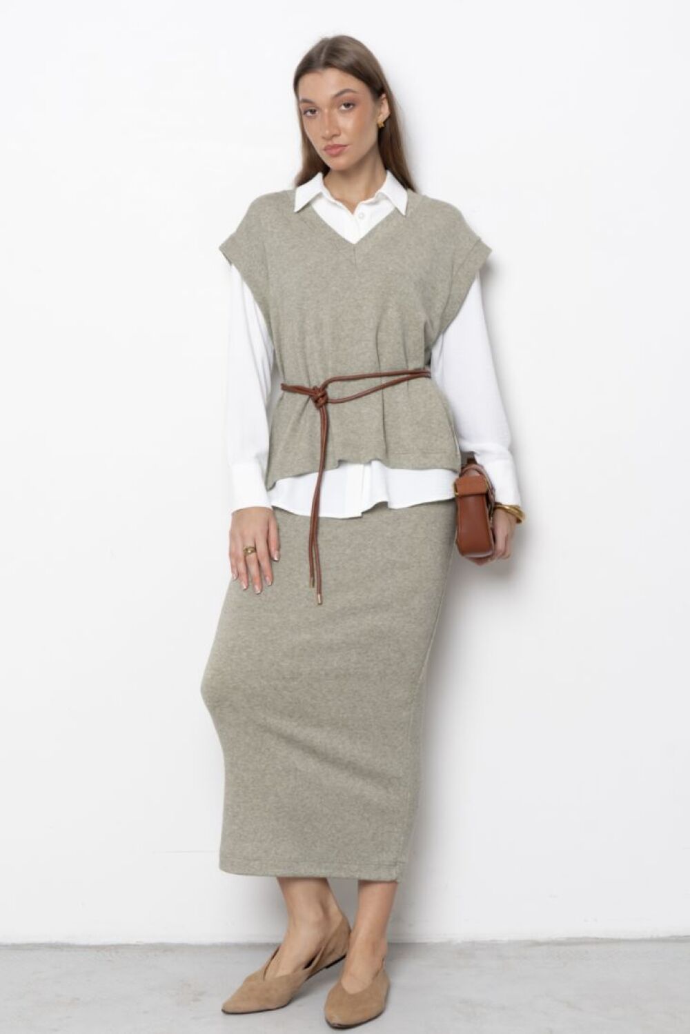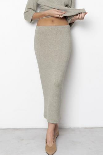 Длинная прямая юбка-карандаш с высоким мягким поясом на резинке. Представлена в трех цветовых решениях."