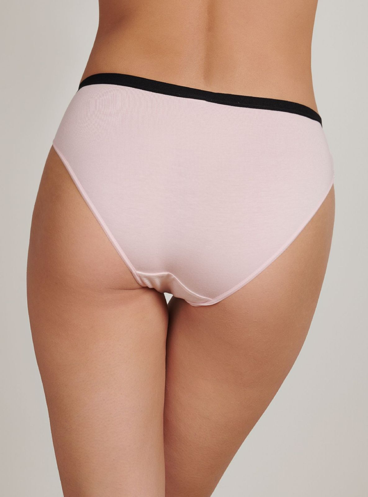 Женские трусы от торговой марки Индефини.  Трусы-слипы из хлопка, розового цвета, с принтом, в полоску спереди, на мягкой резинке, средней посадки. Состав: 95% хлопок 5% эластан