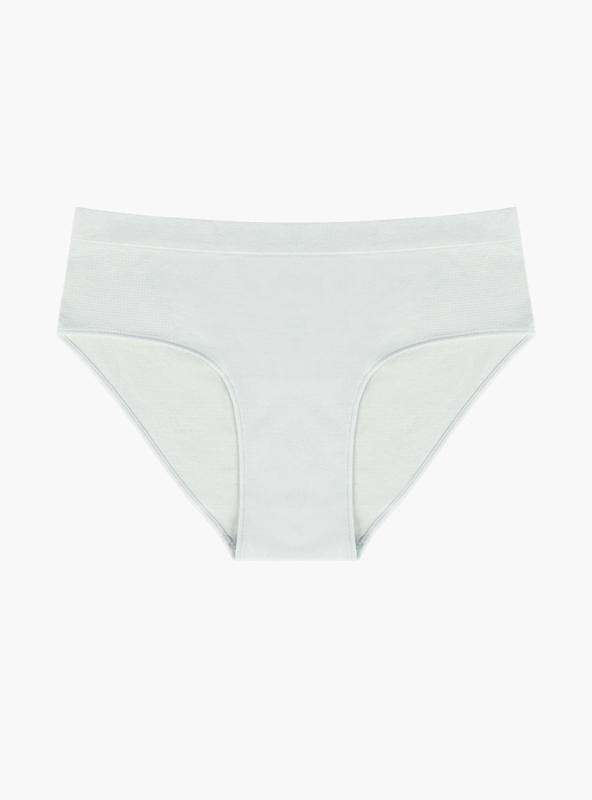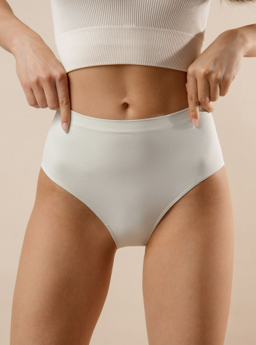 Женские трусы торговой марки Indefini. Трусы-слипы серого цвета с высокой посадкой, изготовлены из полиамида, дополнены гигиенической хлопковой ластовицей, вырезы для ног обработаны плоским швом вподгибку с резинкой, широкий пояс на резинке плотно фиксируется на теле.