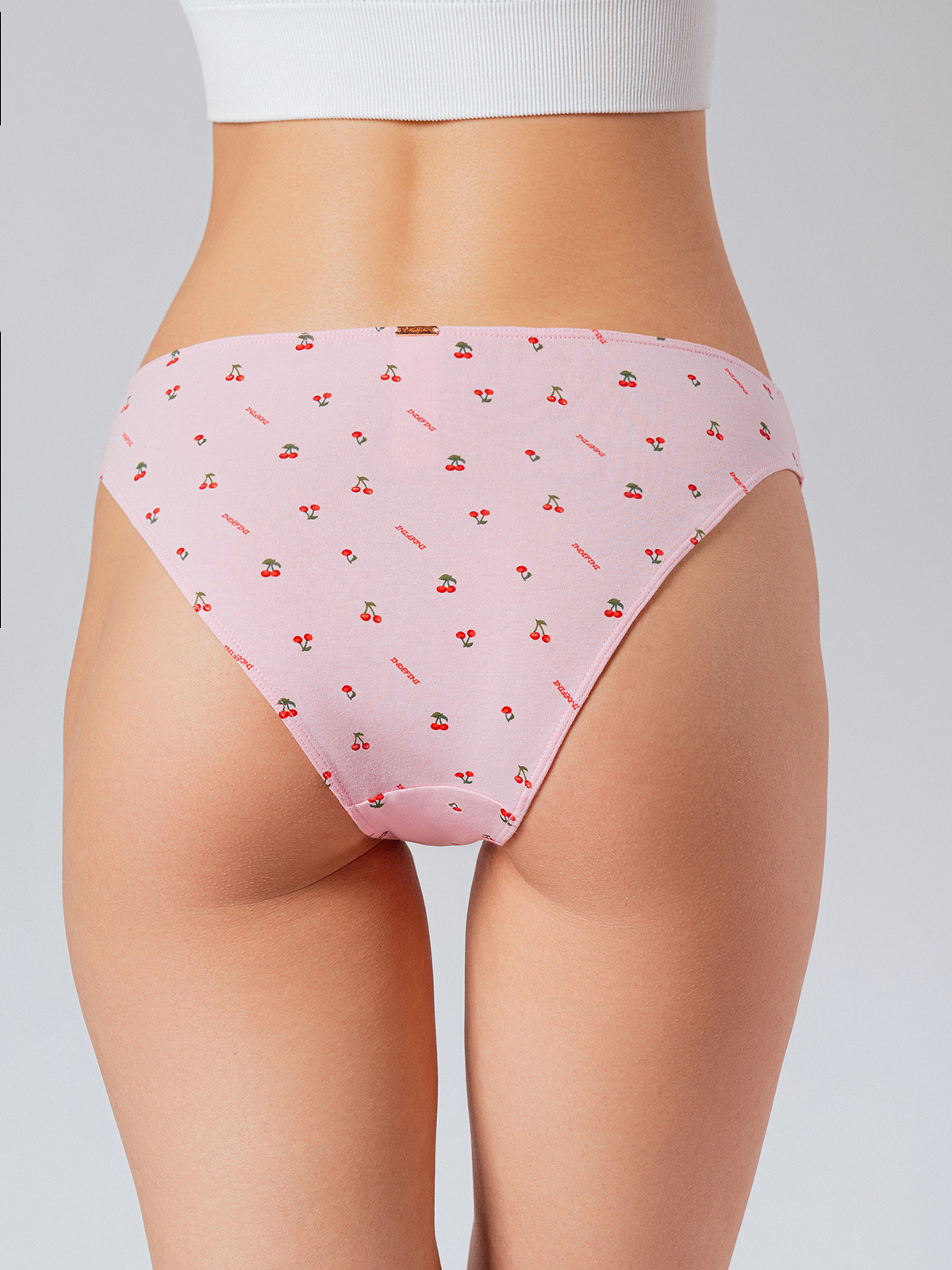 ✔ Дизайн: Нежно-розовый фон с милым повторяющимся принтом красных вишен и миниатюрной надписью «INDEFINI» — создает легкий, романтичный и игривый образ. Принт распределен равномерно по всей поверхности, добавляя изделию воздушности и характера.