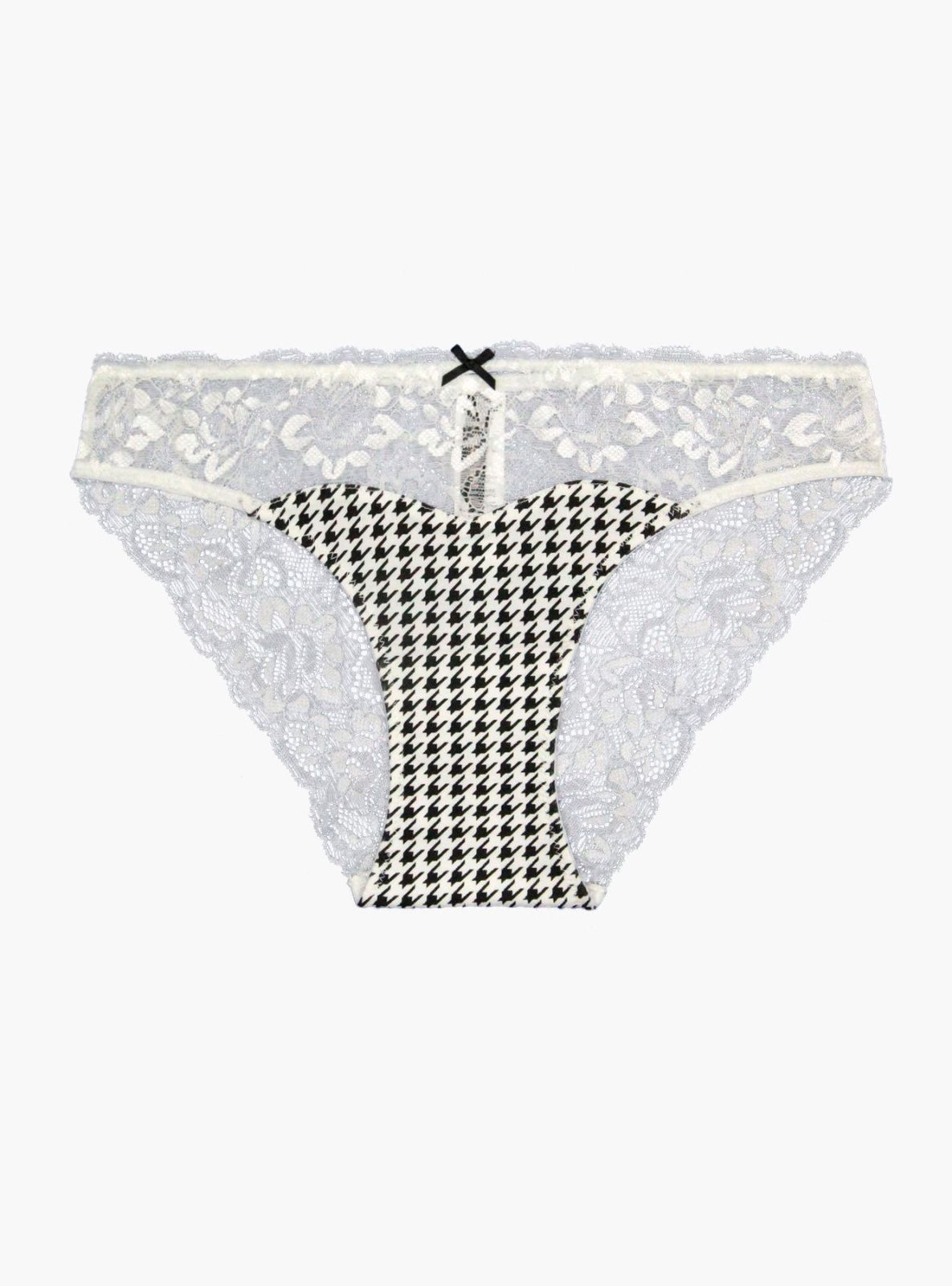 Трусы-слипы из хлопка, черно-белого цвета, с принтом, с кружевными вставками и обрамлением, с кружевной частью сзади, средней посадки, на мягкой резинке.