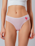 Трусы средней посадки держатся на талии мягкой кружевной резинкой, украшенной изящным бантиком спереди.