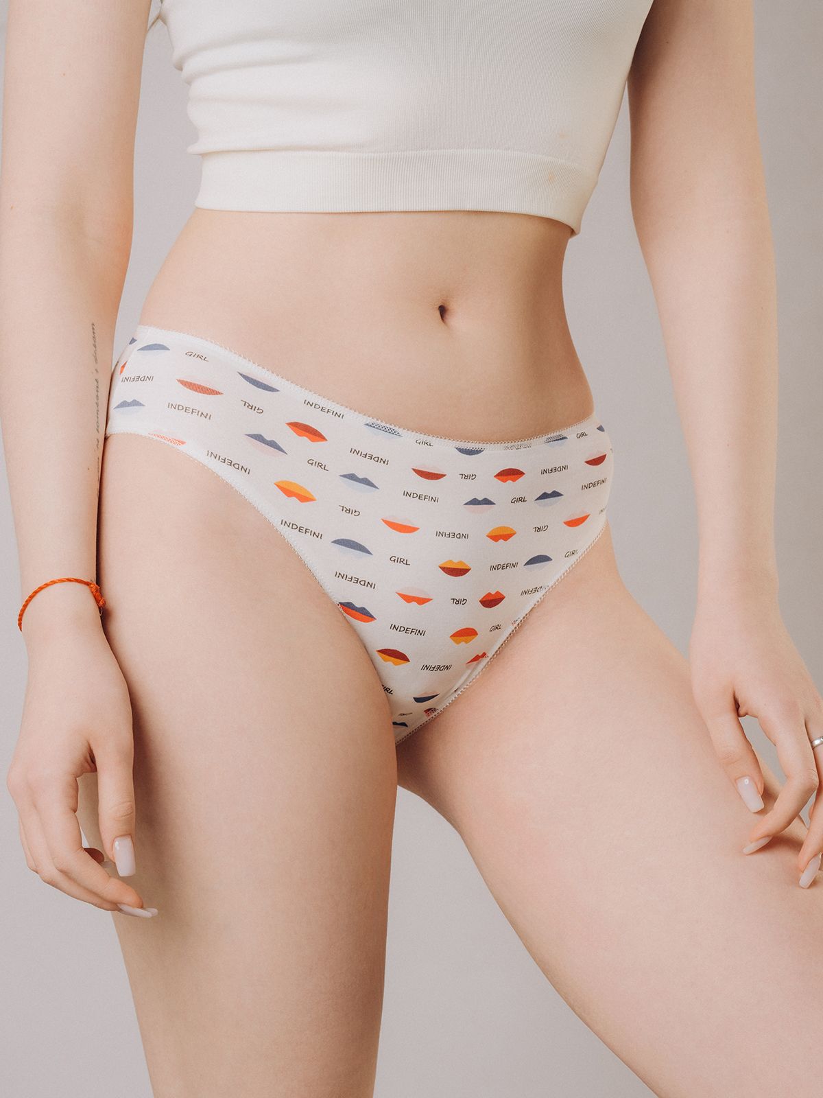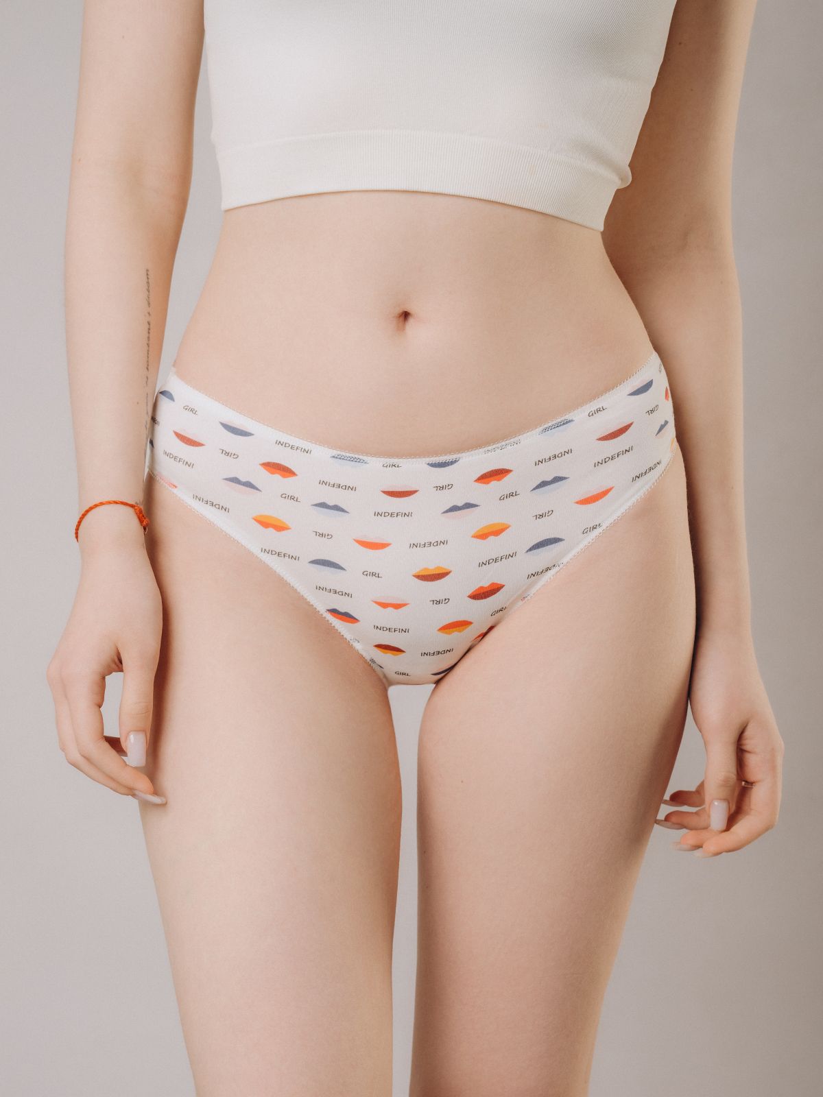 Трусы слипы женские изготовлены из хлопкового материала. Имеют среднюю посадку и мягкую эластичную резинку на талии, удерживающую трусы во время носки. Выполнены в классическом белом цвете с нанесенным абстрактным принтом.