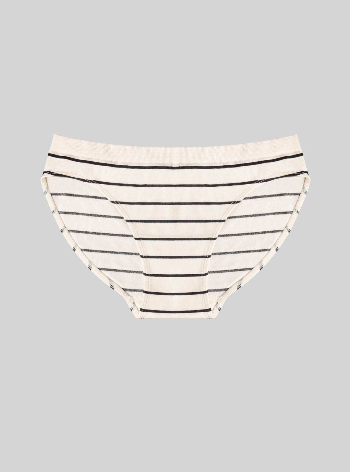 Женские трусы-слипы изготовлены из полиамида и полиэстера.  Они сочетают мягкость, эластичность и прочность.  Модель без боковых швов средней посадки выполнена в черно-белом полосатом дизайне, который придаст вашему образу нотку утонченности.  Цельнокроеная резинка на талии гарантирует комфортную посадку без следов на коже, а материал надолго сохраняет форму даже при частом использовании.