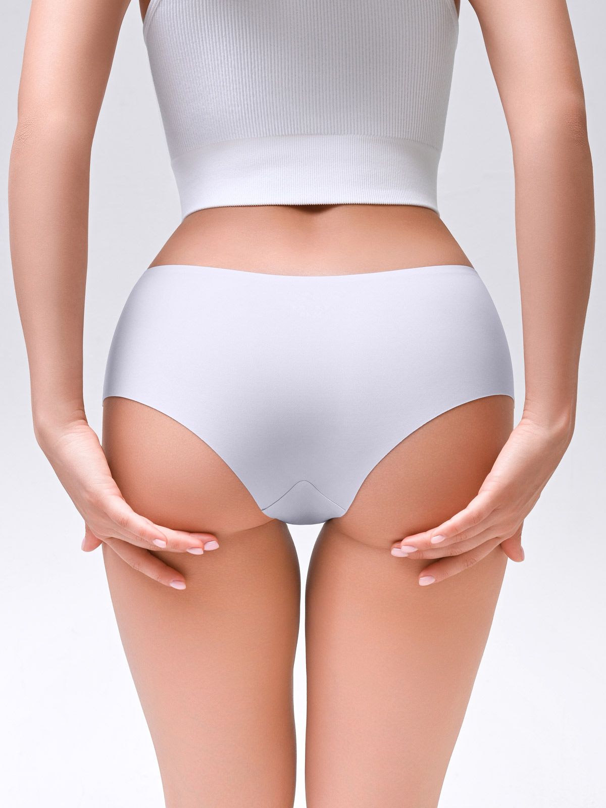 Трусы слипы женские изготовлены из полиамида и выполнены в голубом цвете. Бесшовные трусы средней посадки фиксируются во время носки мягкой резинкой на талии. Они подчеркивают контур фигуры, создавая соблазнительный силуэт.