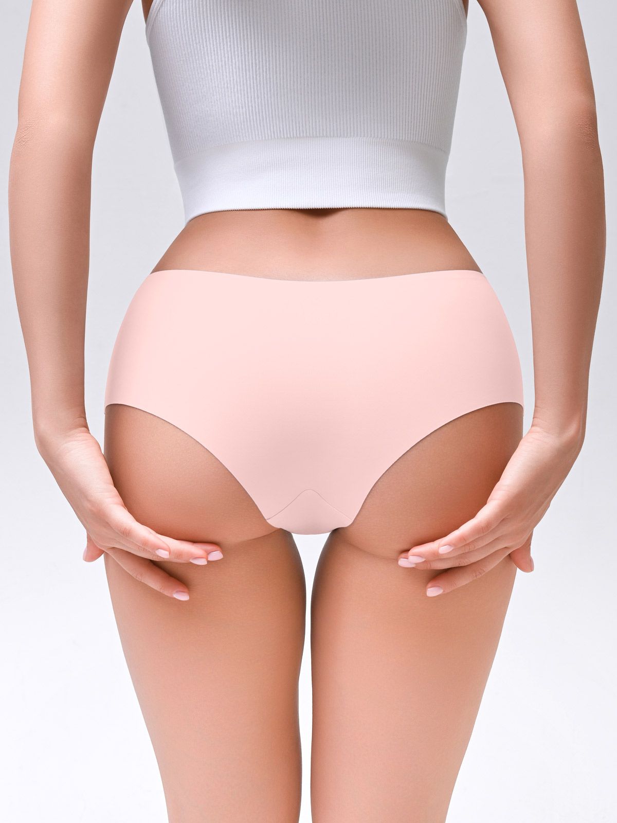 Трусы слипы женские изготовлены из смесовой ткани и выполнены в розовом цвете. Бесшовные трусы средней посадки фиксируются во время носки мягкой резинкой на талии. Они подчеркивают контур фигуры, создавая соблазнительный силуэт.