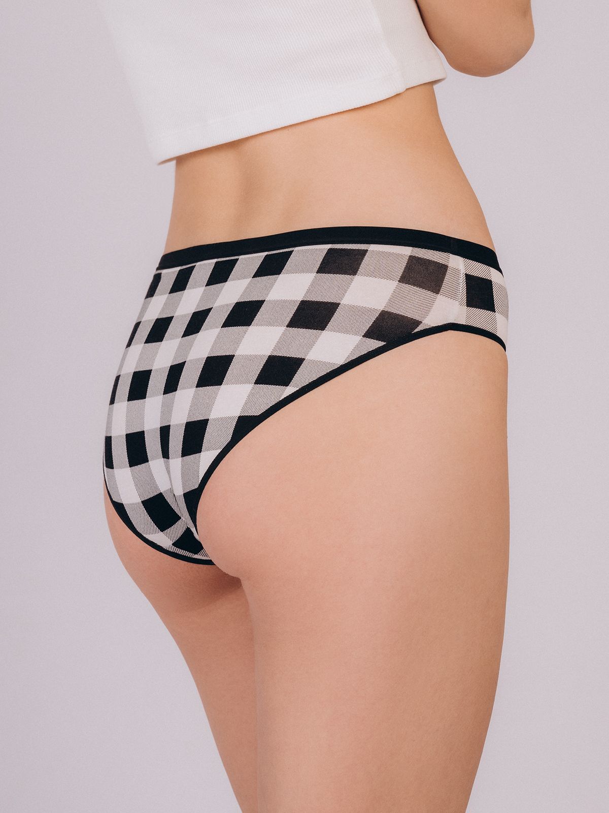 Трусы слипы женские изготовлены из хлопкового материала. Трусы слипы имеют среднюю посадку. Мягкая резинка на талии крепко фиксирует трусы на талии, не оставляя следов на коже. На внутренней стороне имеется хлопковая ластовица. Трусы слипы женские выполнены с принтом в черно-белую клетку.
