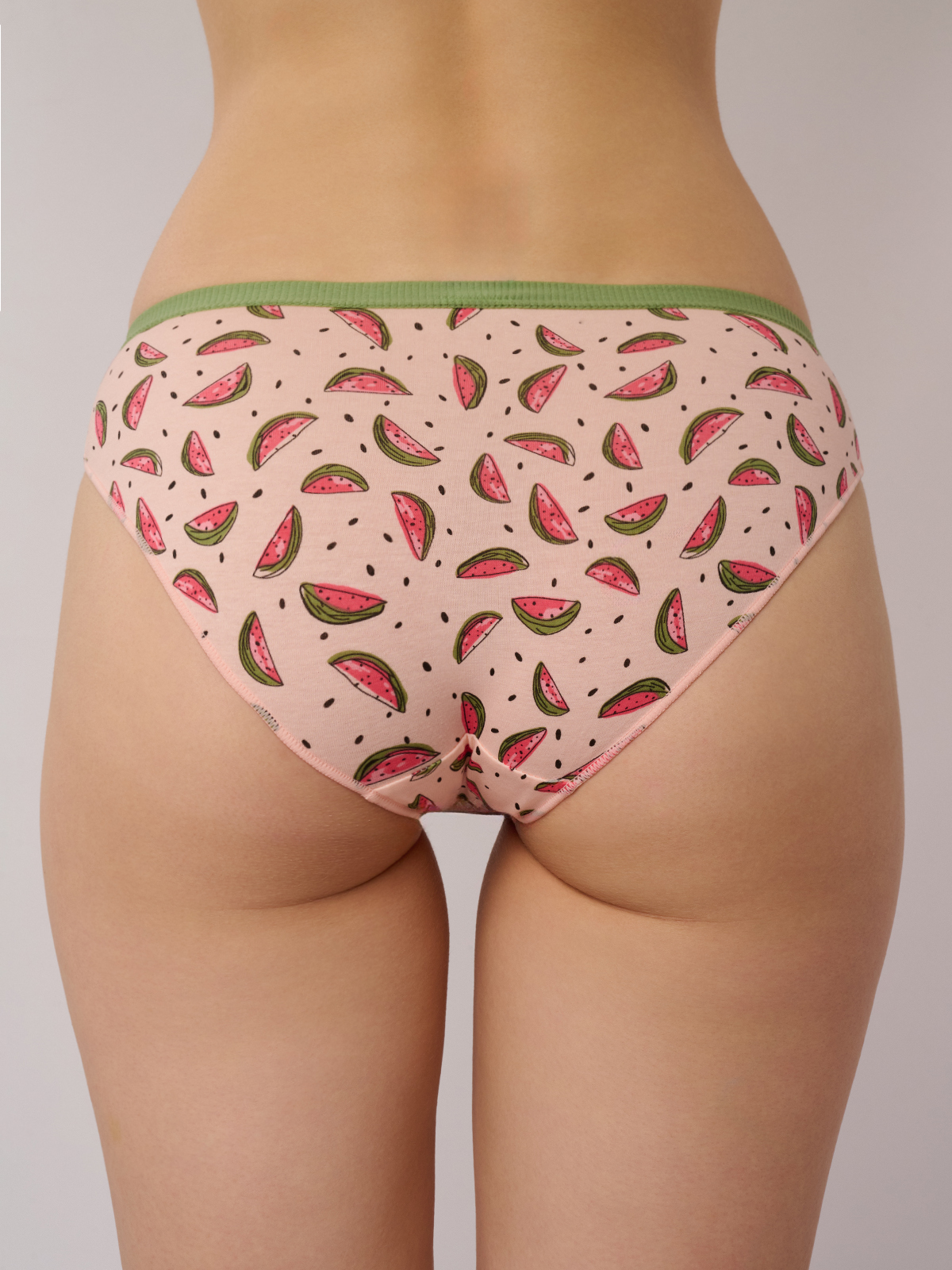 - Дизайн: Принт с арбузами и зелёная резинка на поясе.