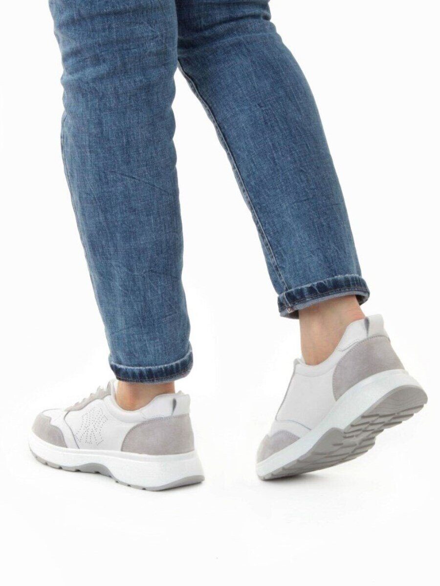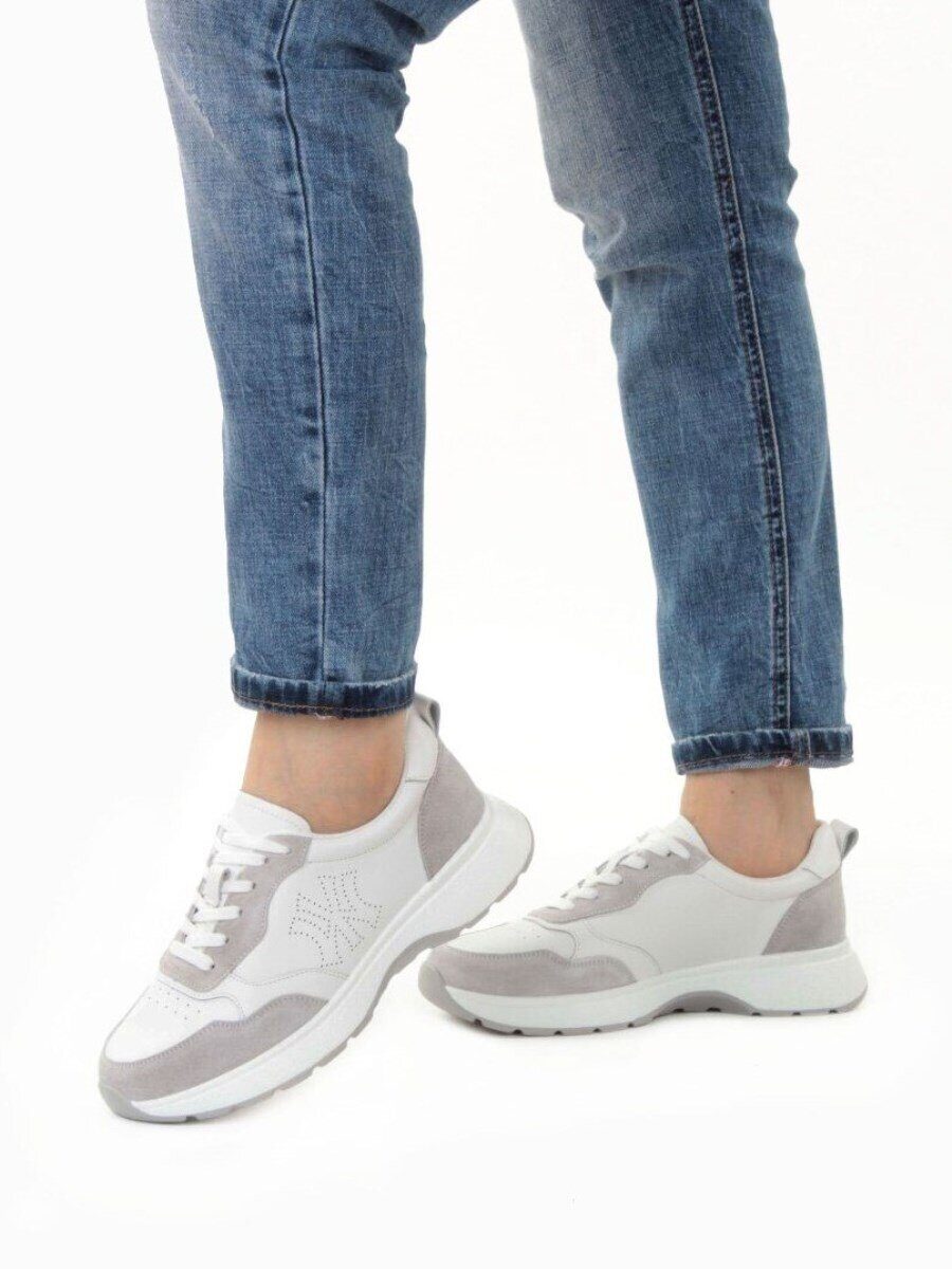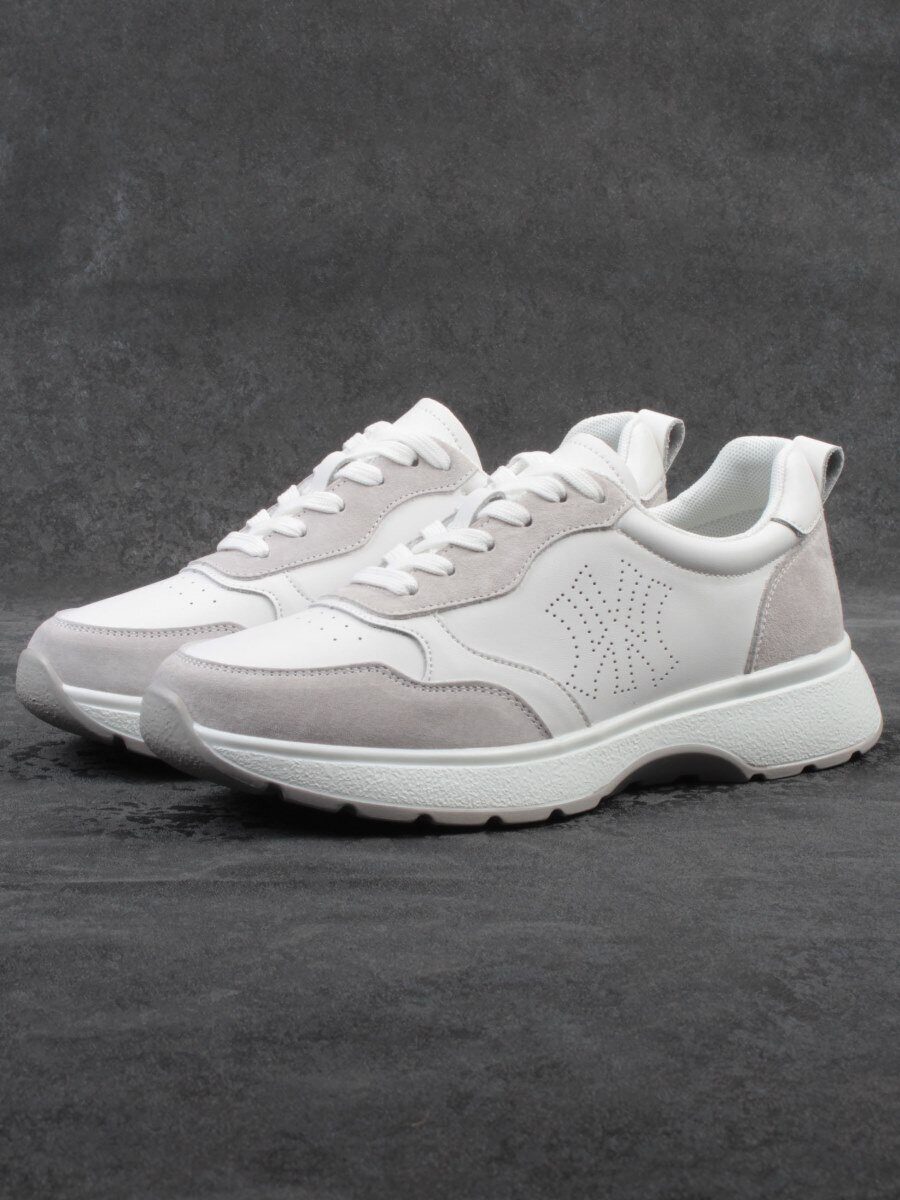 03-YC527-2 WHITE/GRAY Кроссовки женские (натуральная кожа)
