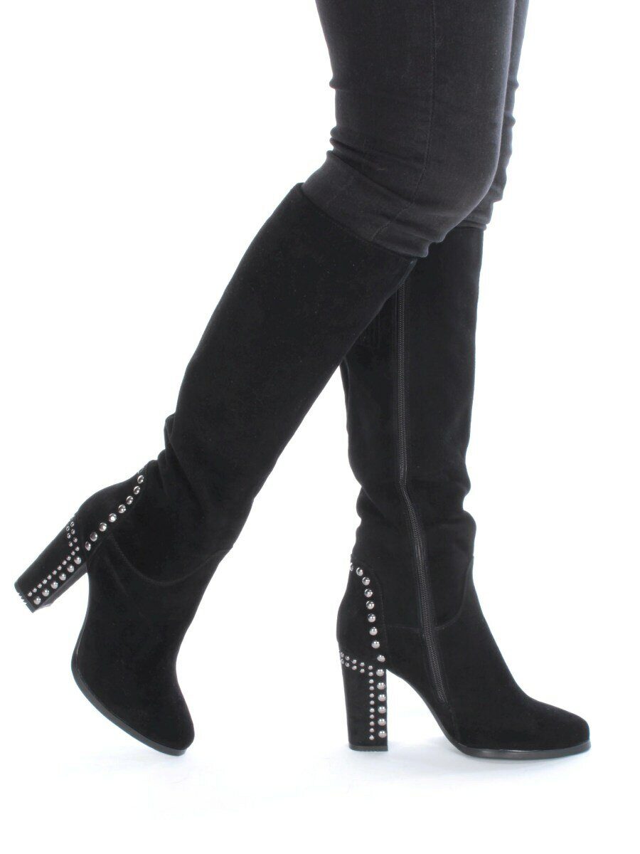 02-13R-01Y1-Q732F BLACK Сапоги женские (натуральная замша, натуральный мех (евромех))