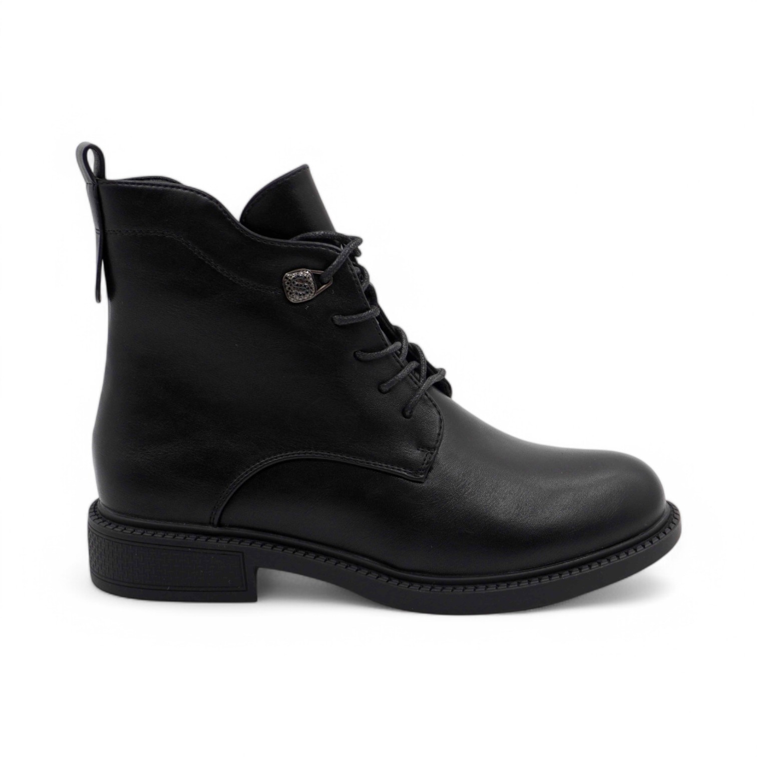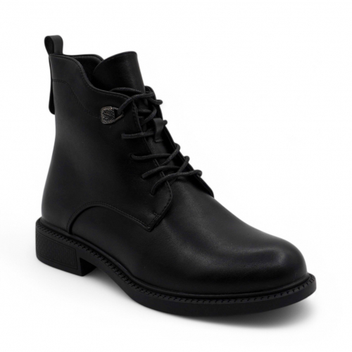 Женские демисезонные ботинки из эко-кожи со шнурками и замком сбоку