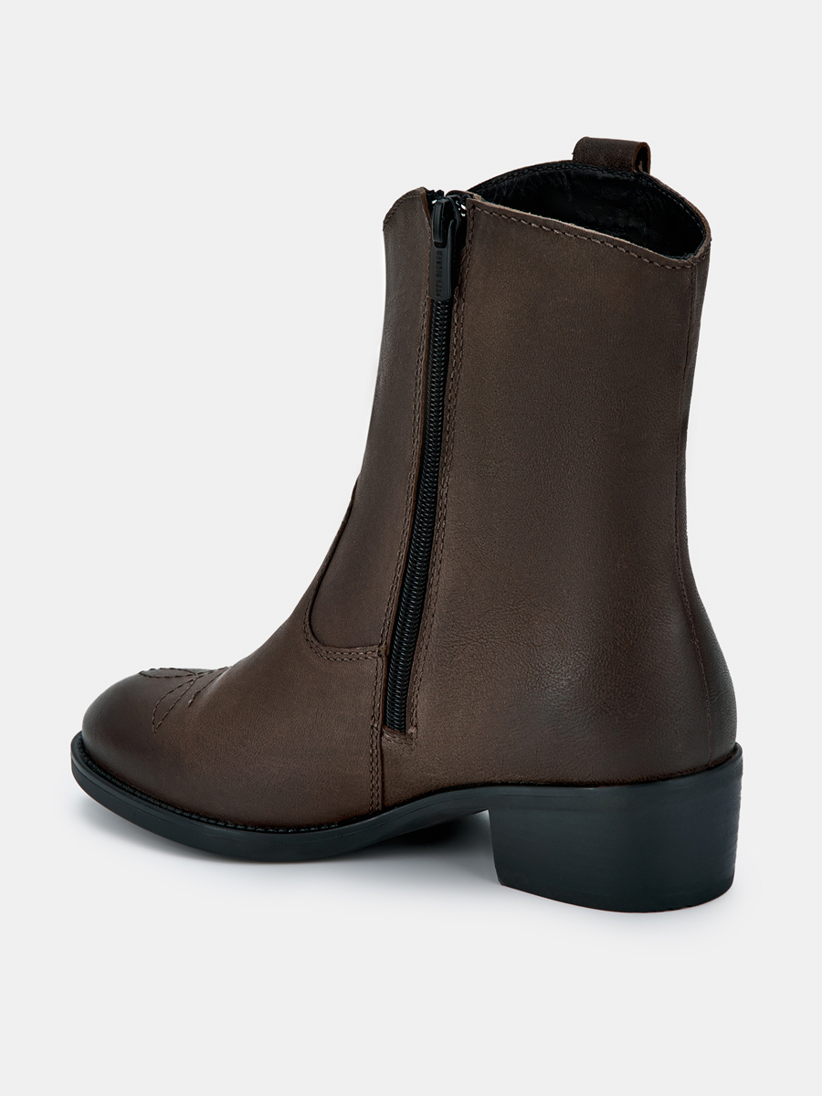 В коробке лежит образец коричневой гладкой кожи, на коробке указано кожа, а сами сапоги почему-то из не то из нубука или Крека, но не гладкой кожи, как указано в описании или на коробке! А так нормальные сапоги, чуть кожа помята!