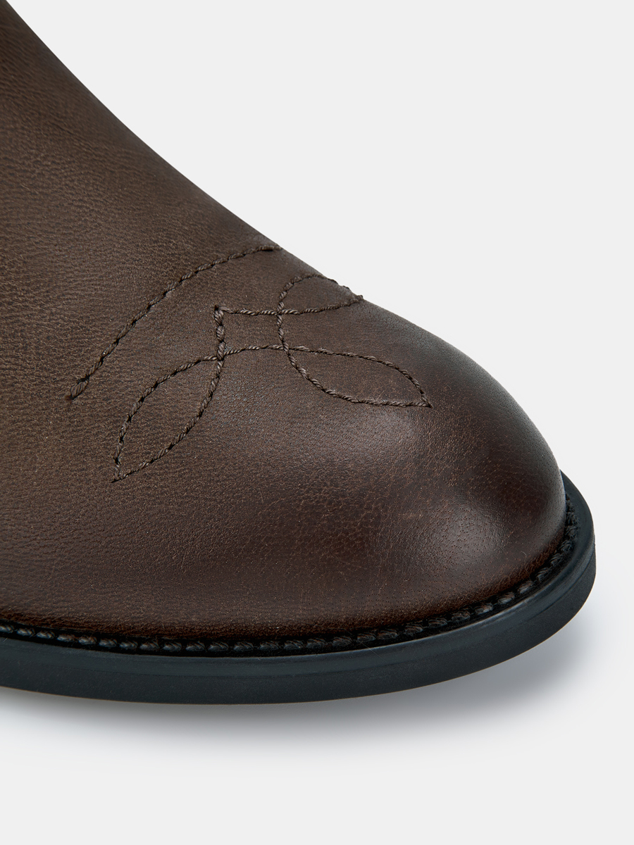 В коробке лежит образец коричневой гладкой кожи, на коробке указано кожа, а сами сапоги почему-то из не то из нубука или Крека, но не гладкой кожи, как указано в описании или на коробке! А так нормальные сапоги, чуть кожа помята!