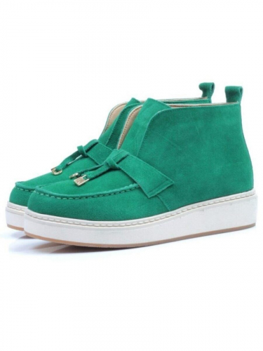 Зеленый Ботинки женские демисезонные (натуральная замша, байка)