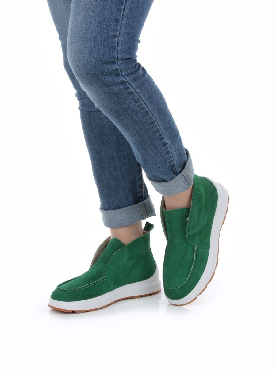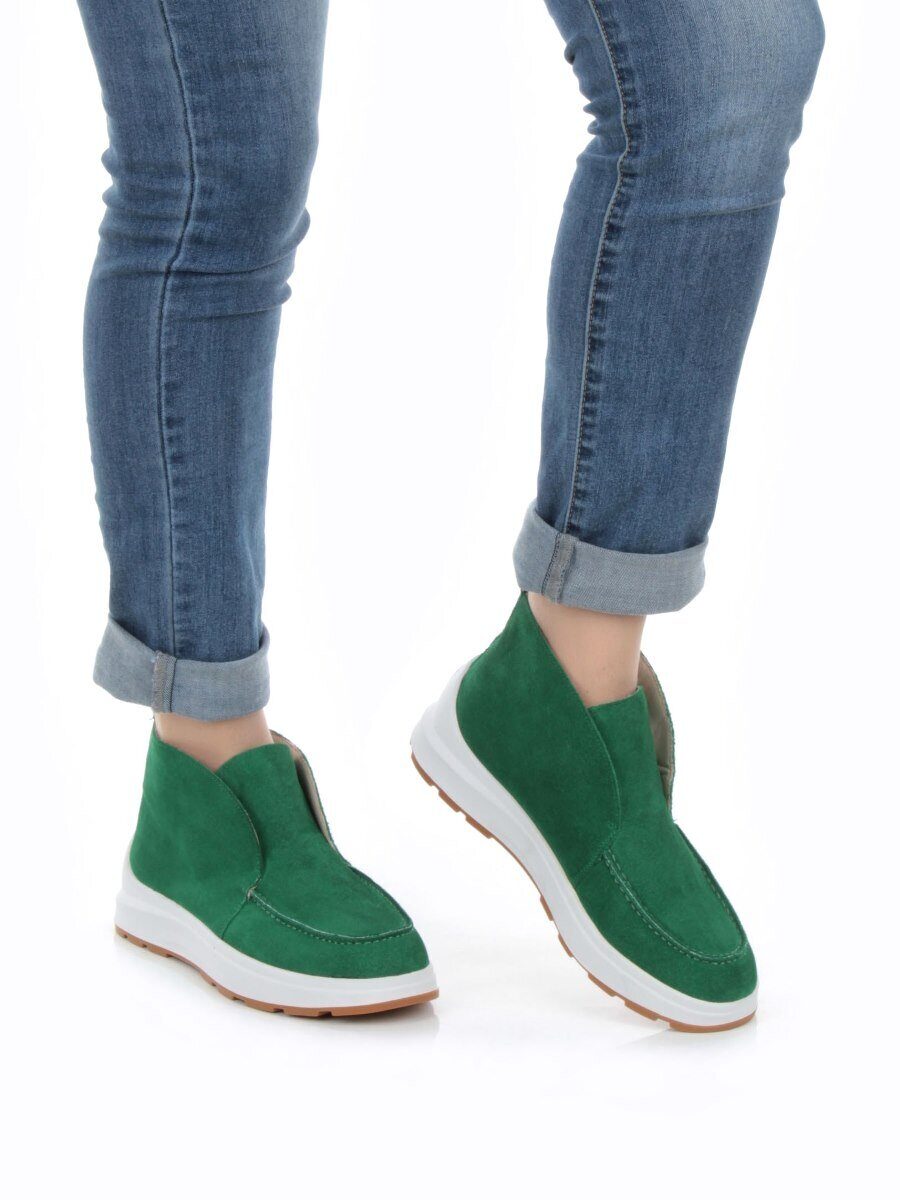 01-5280-9 GREEN Ботинки демисезонные женские (натуральная замша, байка)