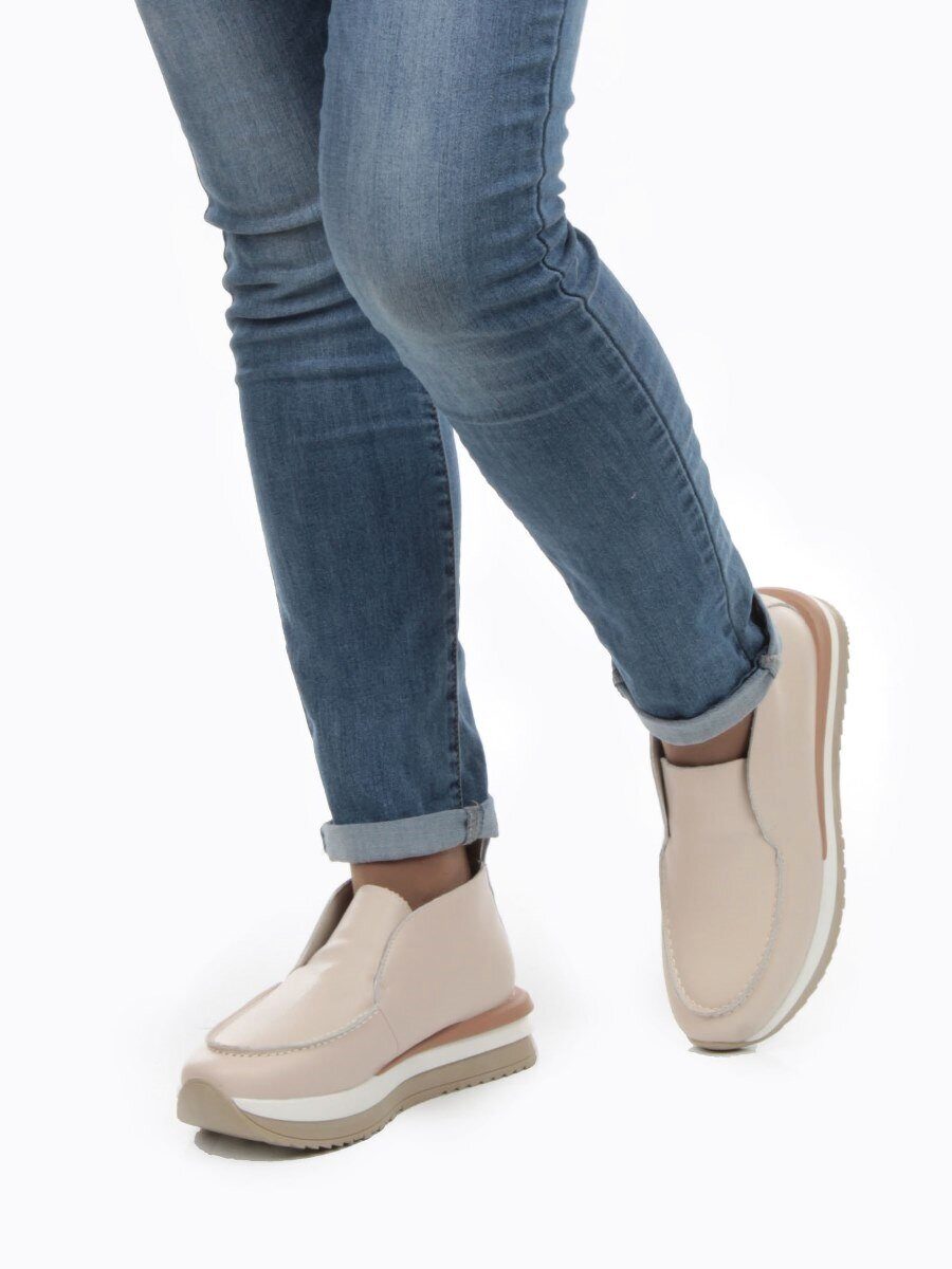 01-5576-2 BEIGE Ботинки демисезонные женские (натуральная кожа, байка)