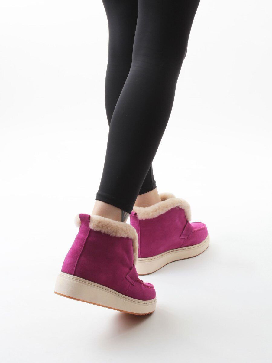 Малиновый Ботинки зимние женские (натуральная кожа, 100% шерсть, натуральный мех)