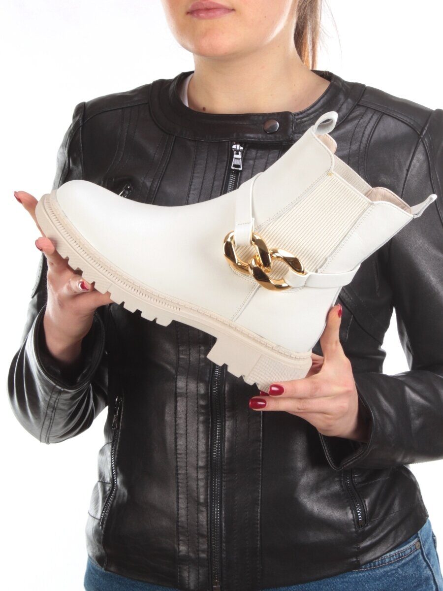 5267-2 WHITE Ботинки демисезонные женские (натуральная кожа, байка)