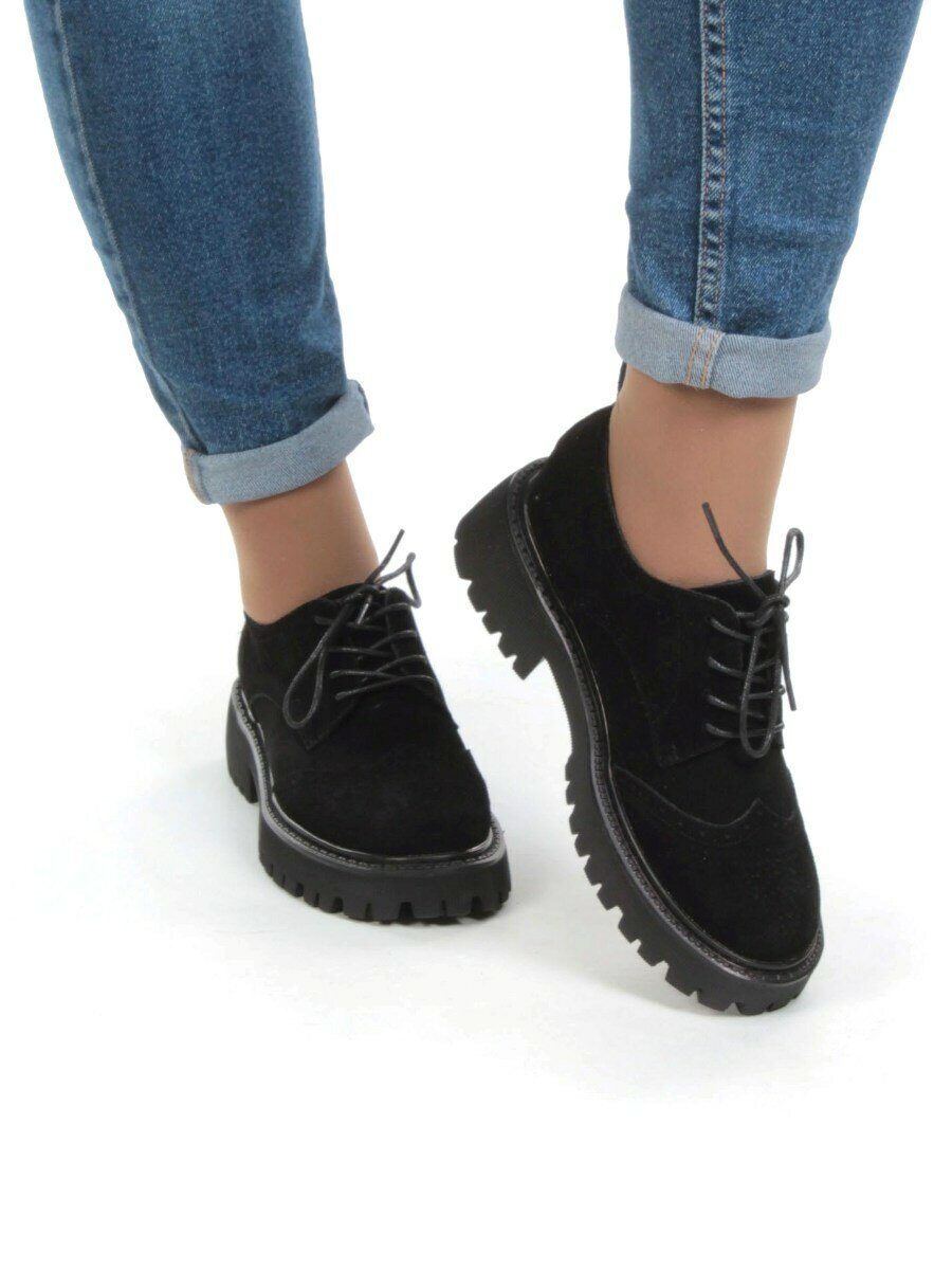 Черный Полуботинки женские (натуральная замша)