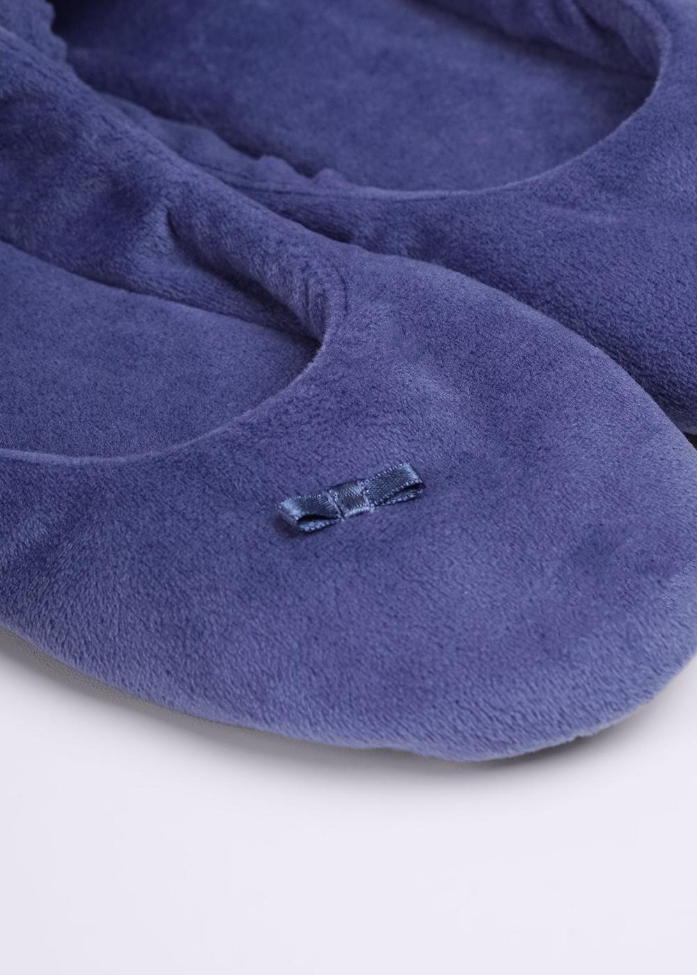 Домашние туфли-балетки из велюра. Декорированы атласным бантом.