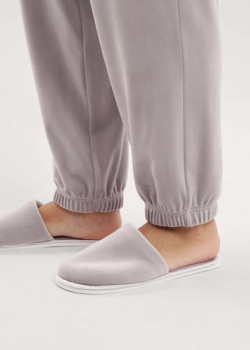 Лёгкие, домашние тапочки для дома с закрытым носом из трикотажного полотна велюр . Толстая подошва.