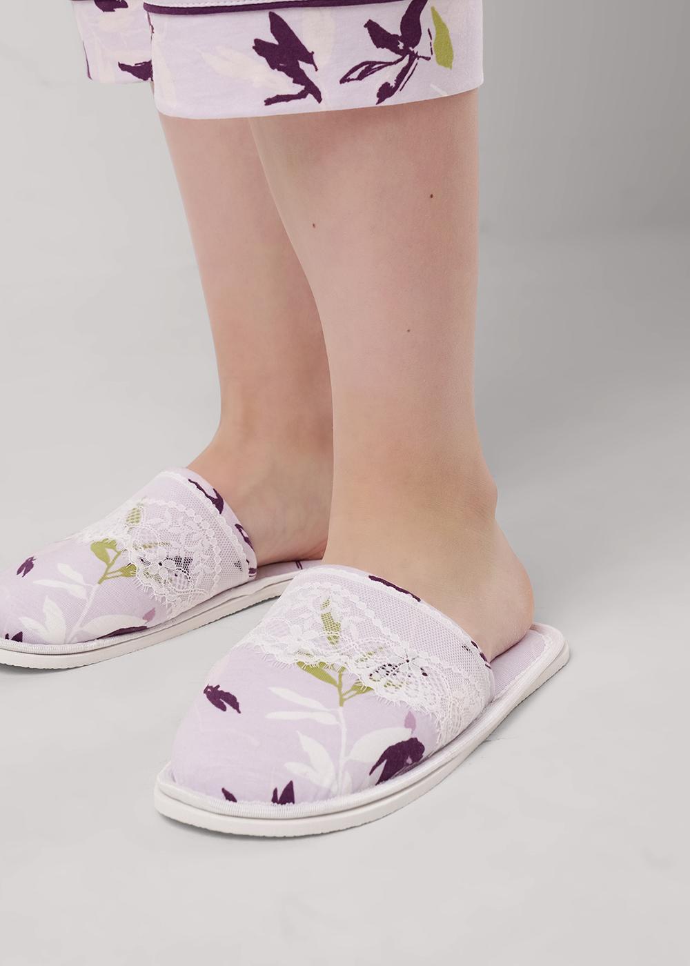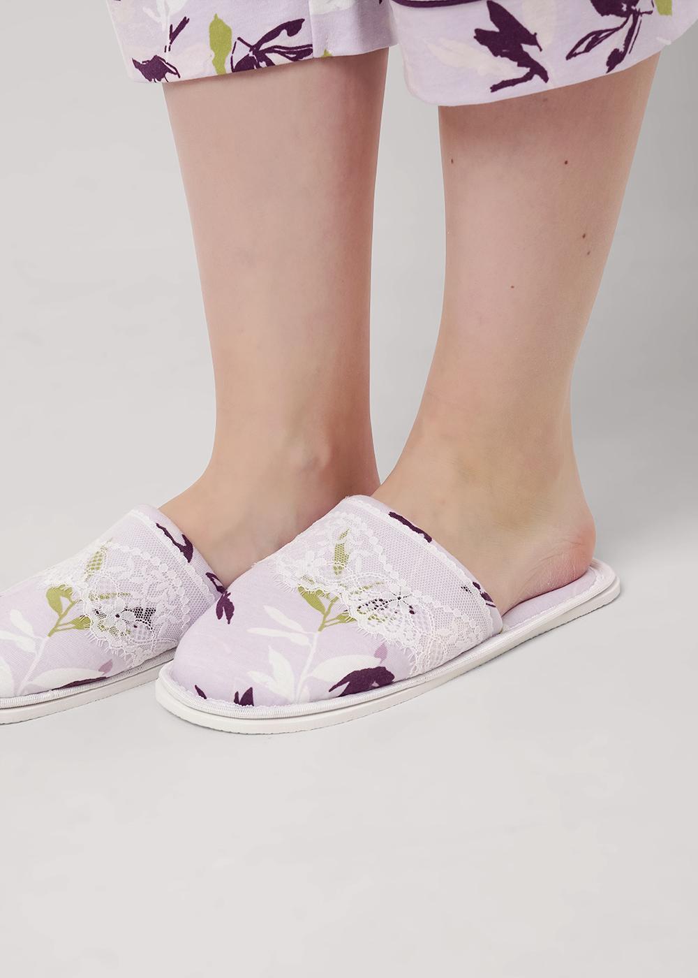 Закрытые домашние тапочки на толстой подошве из хлопкового трикотажного полотна с добавлением модала. Сверху тапочки кружево.