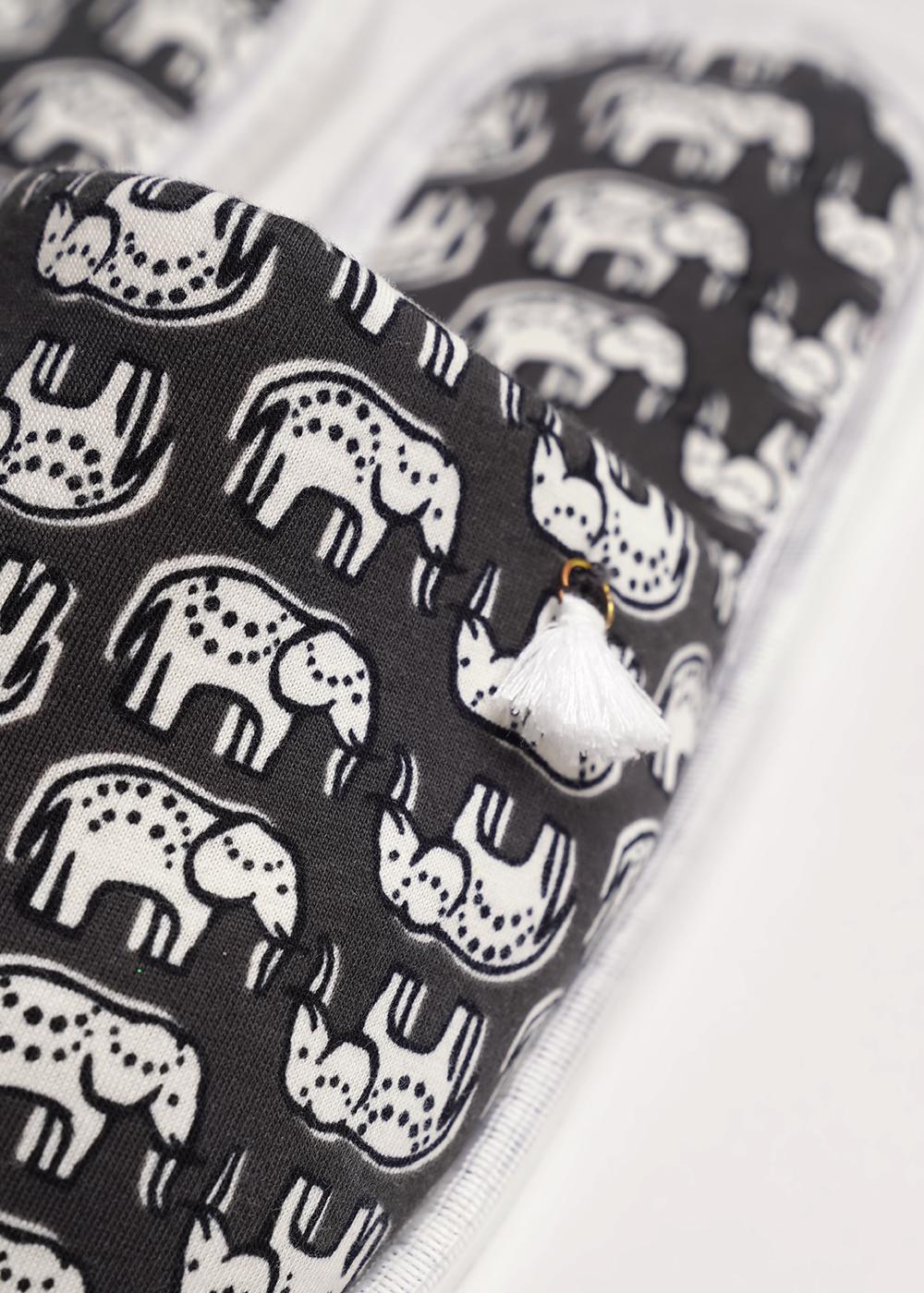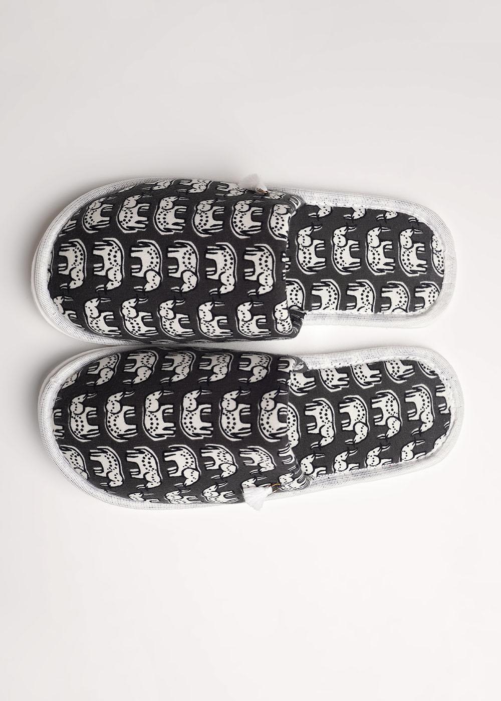 Лёгкие тапки для дома и отдыха с закрытым носом из хлопкового трикотажного полотна, нашивка. Толстая подошва.